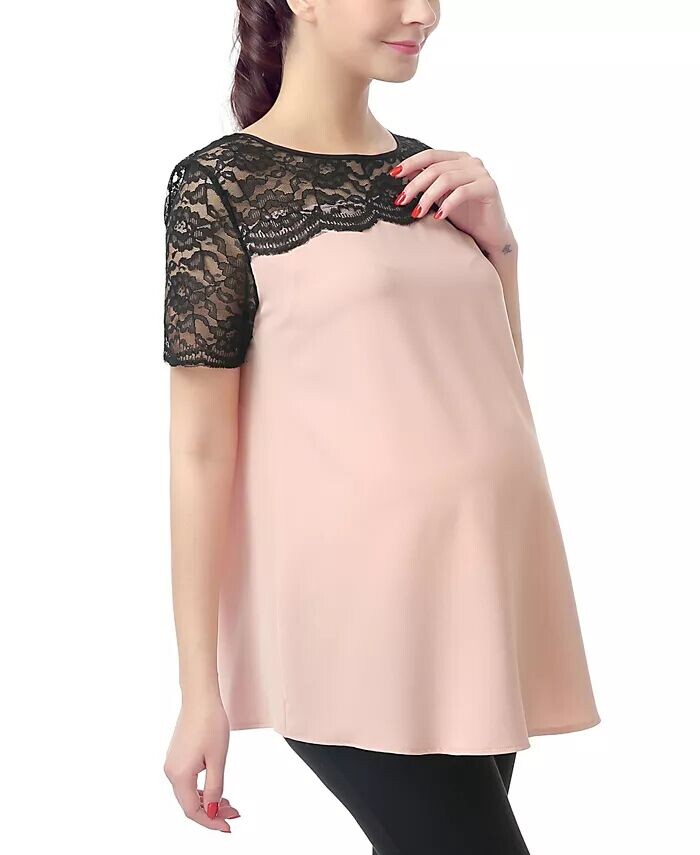 Блуза с кружевной отделкой для беременных kimi + kai, розовый
