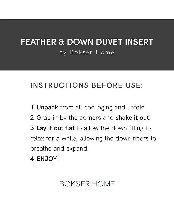 Пододеяльник с перьями и пухом от BOKSER HOME изготовлен из мягкого 100% хлопкового сатина, наполненного смесью 80% белых утиных перьев и 20% пуха. Доступны в трех уровнях теплоты. Они тщательно разработаны, чтобы оставаться пушистыми в течение долгого времени, чтобы ваша кровать всегда выглядела и чувствовала себя очень уютной.
