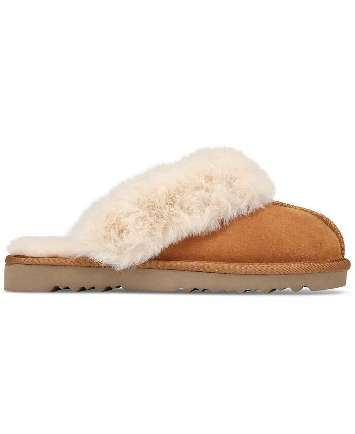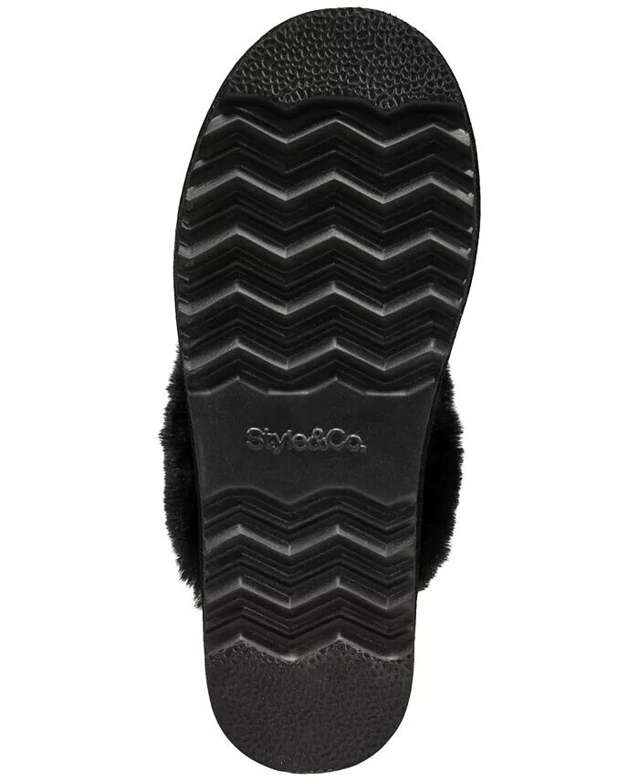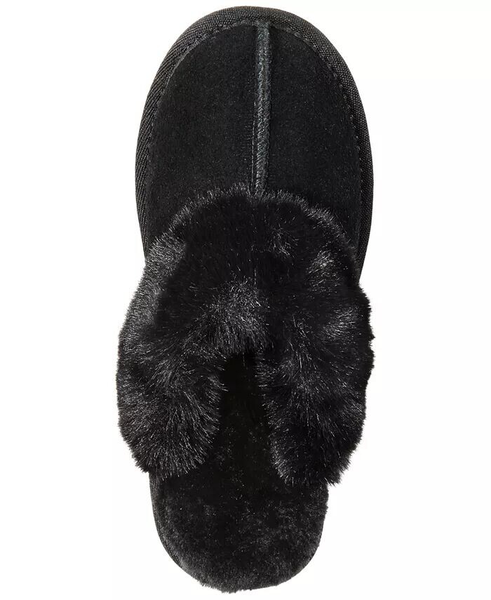 Пушистая подкладка из искусственного меха согревает пальцы ног в уютных тапочках Rosiee из натуральной замши от Style & Co.