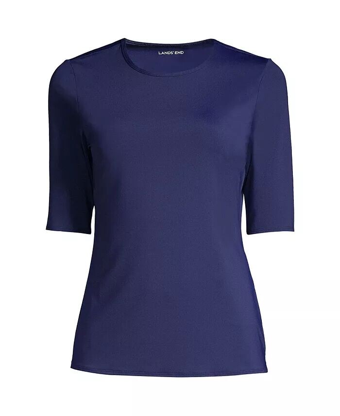 Женская длинная футболка для плавания с круглым вырезом, защита от солнца UPF 50 Lands' End, синий