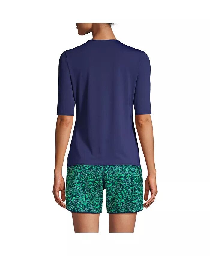 Женская длинная футболка для плавания с круглым вырезом, защита от солнца UPF 50 Lands' End, синий 4 743₽