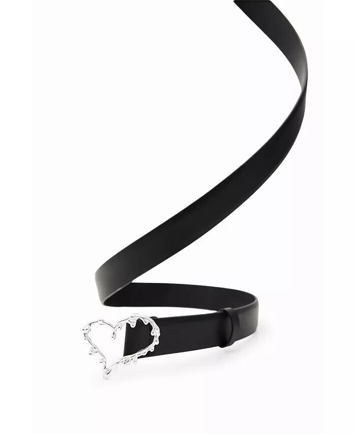 Однотонный кожаный ремень с латунной пряжкой в ​​форме сердца и эффектом ручной работы. Дизайн Галы Мейер.