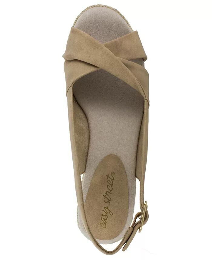 Модель Maureen от Easy Street имеет загнутый дизайн на союзке, который придает свежий и современный вид вашим летним сандалиям с пяткой на пятке. Регулируемая пряжка со скрытой струей обеспечивает индивидуальную посадку. Мягкая подкладка, легкий вес и гибкость — все это дополняет классические эспадрильи на танкетке.