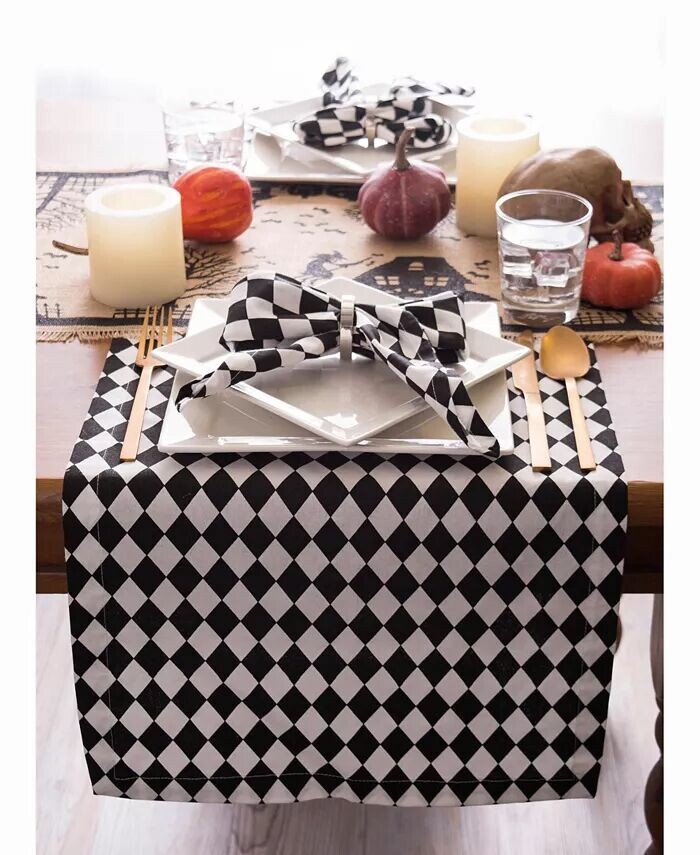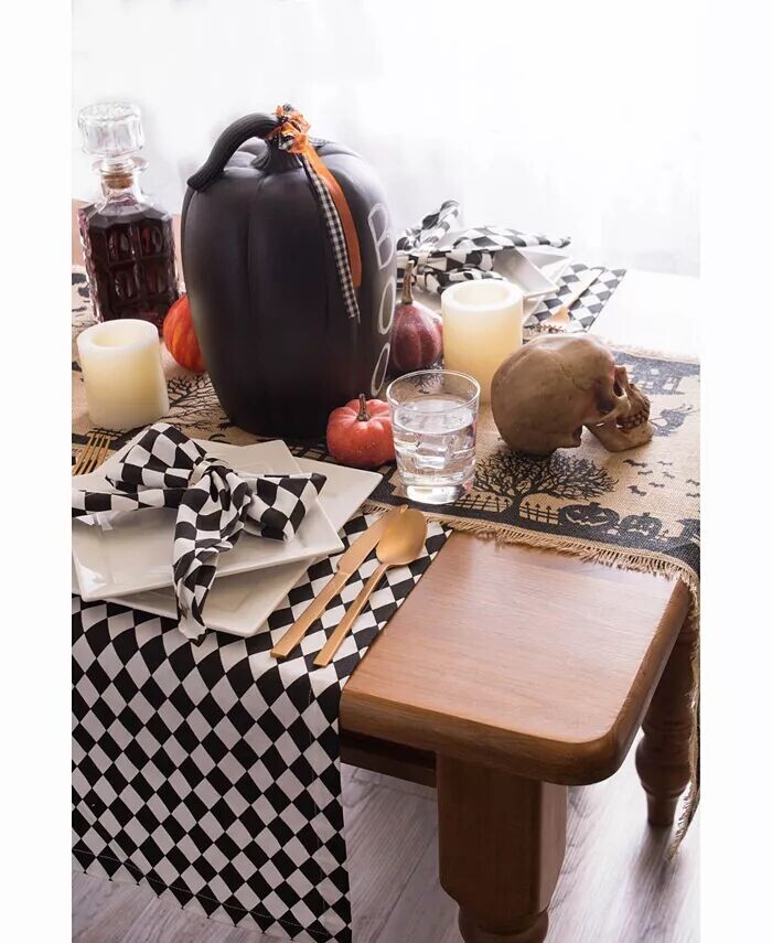 Черно-кремовая дорожка для стола «Хэллоуин Арлекин» позволяет легко украсить сервировку стола к Хэллоуину! Поставьте тыквы на наши дорожки для стола, чтобы создать жуткие сцены Хэллоуина с декоративными пауками и жуткой паутиной в вашем доме с привидениями! Отлично подходит для столов у входа, низких книжных полок, обеденных столов или других поверхностей вашего дома.