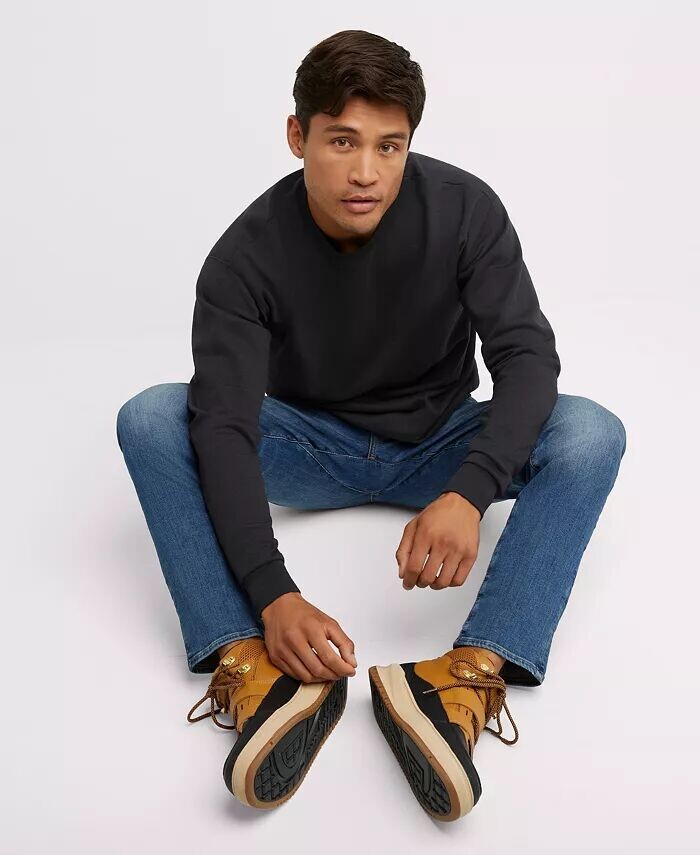 Мягкий и плюшевый, этот уютный пуловер изготовлен из смесовой ткани средней плотности с добавлением хлопка, полученного с американских ферм. Двойная игольная строчка на горловине и в проймах еще больше повышает качество и прочность классического мужского пуловера с круглым вырезом.