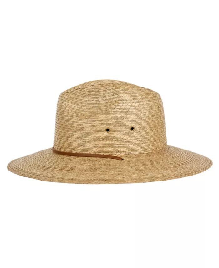Выполненная из пальмовой тесьмы, она обеспечивает достаточную защиту от солнца благодаря широким полям и удобному шнурку для подбородка для надежной фиксации. Идеально подходит для солнечных дней. Эта шляпа одновременно функциональна и модна, что делает ее незаменимым аксессуаром для приключений на природе.