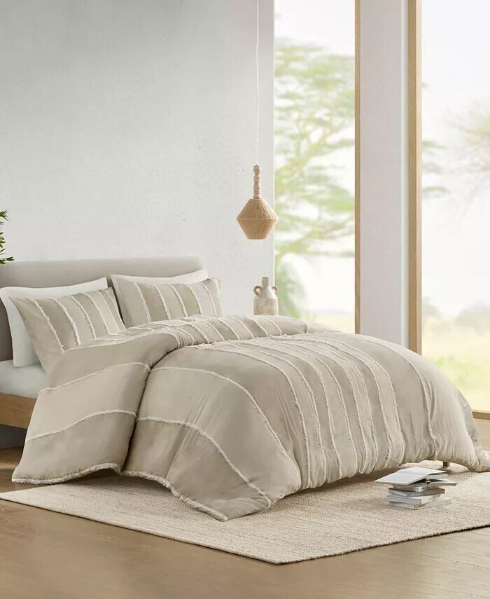 Полосатые комплекты пододеяльников Shay INK+IVY, бежевый