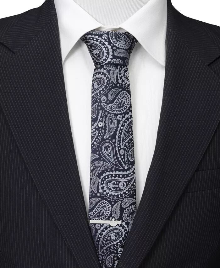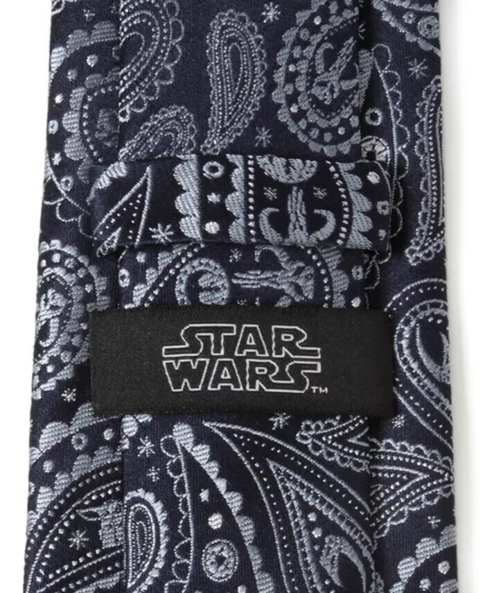 Мир мандалорца оживает в этом потрясающем и замысловатом галстуке с пейсли. Этот галстук темно-голубого цвета, выполненный из шелка, заставит вас часами изучать его, чтобы найти каждый символ. Сможете ли вы найти их все?