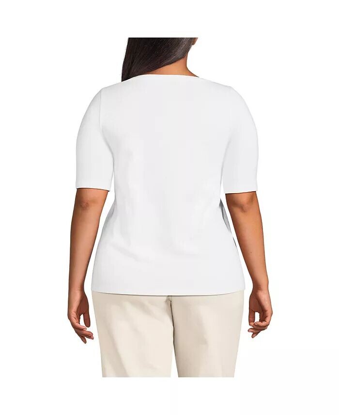 Топ больших размеров Supima с вырезом-лодочкой Lands' End, белый