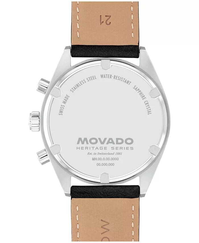 Мужские часы Datron Swiss Quartz Chrono, черные кожаные часы, 41 мм Movado, черный 64 139₽