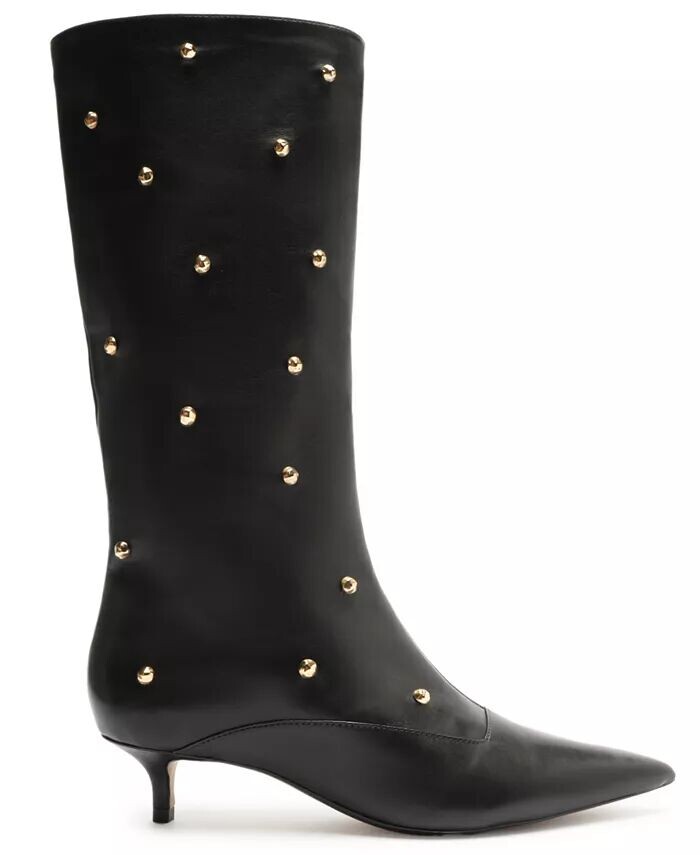 Ботинки на низкой шпильке The Campaign, украшенные металлическими заклепками поперек голенища, выведут любой образ на новый уровень. Попробуйте его днем ​​или вечером с гладким платьем или любимой парой джинсов, чтобы создать стильный, но резкий образ.