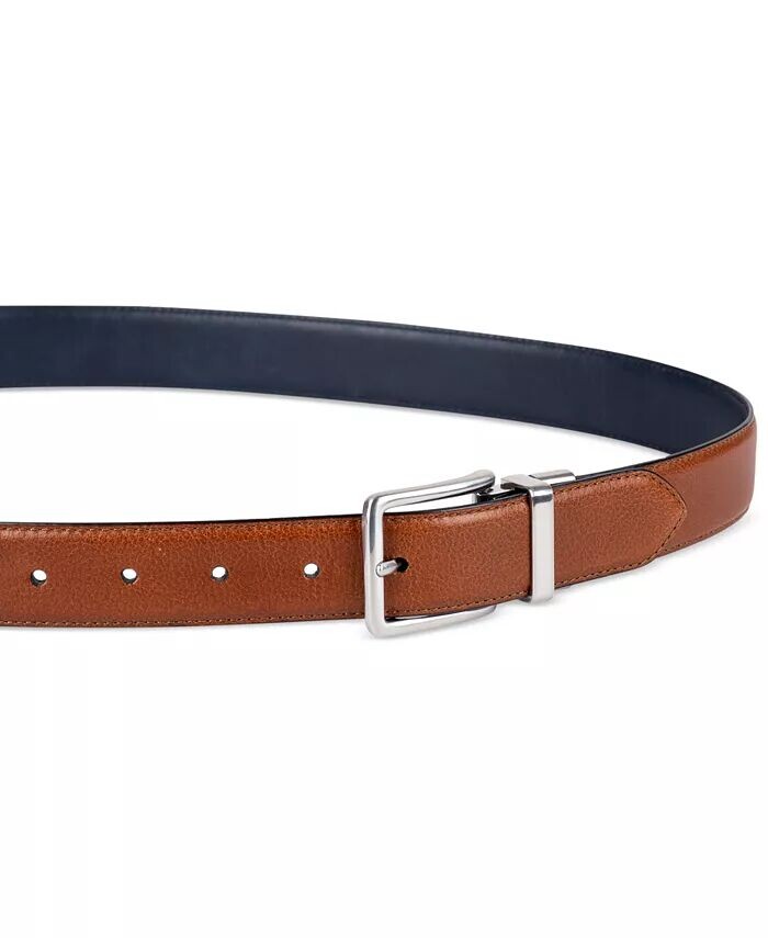 Завершите свой изысканный образ этим красивым двусторонним деловым ремнем от Cole Haan, оснащенным вращающейся двусторонней пряжкой «два в одном», позволяющей максимально эффективно использовать один предмет гардероба.