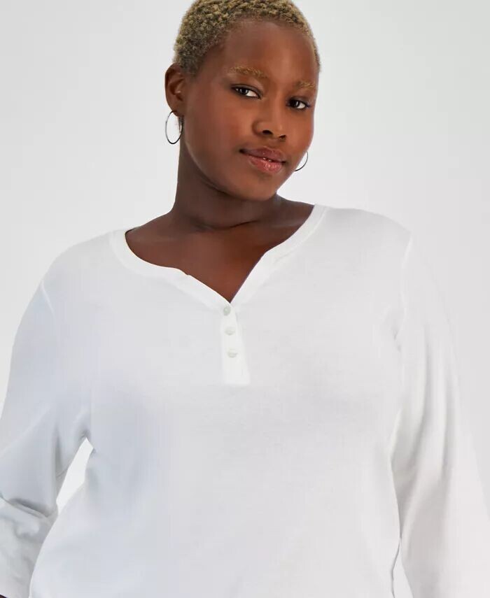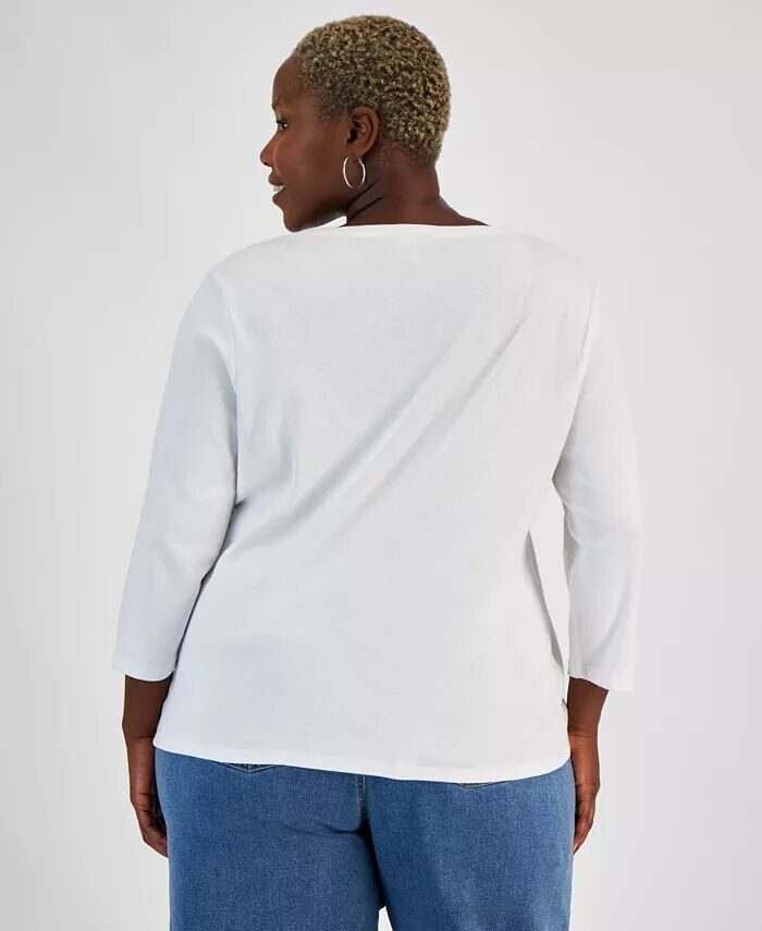 Хлопковый топ размера плюс с рукавом 3/4 Style & Co, белый