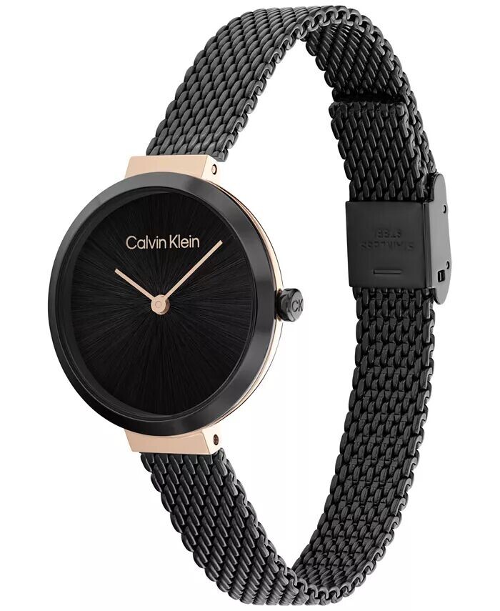Черные часы-браслет из нержавеющей стали с сеткой 28 мм Calvin Klein, черный
