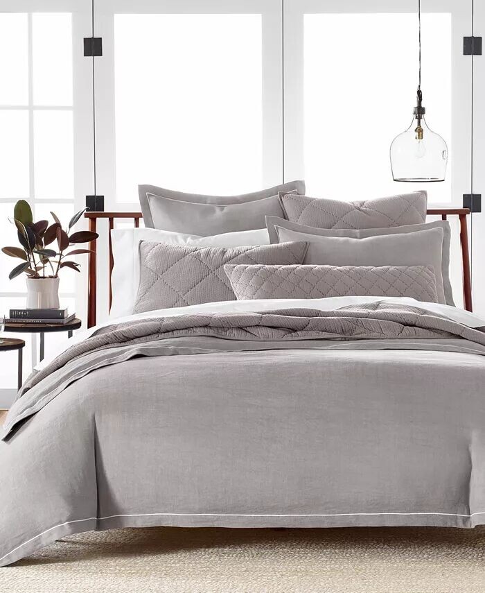 Погрузитесь в повышенный комфорт с коллекцией пододеяльников из льняной смеси от Hotel Collection с вышитым бараттой фланцем и твердым основанием.