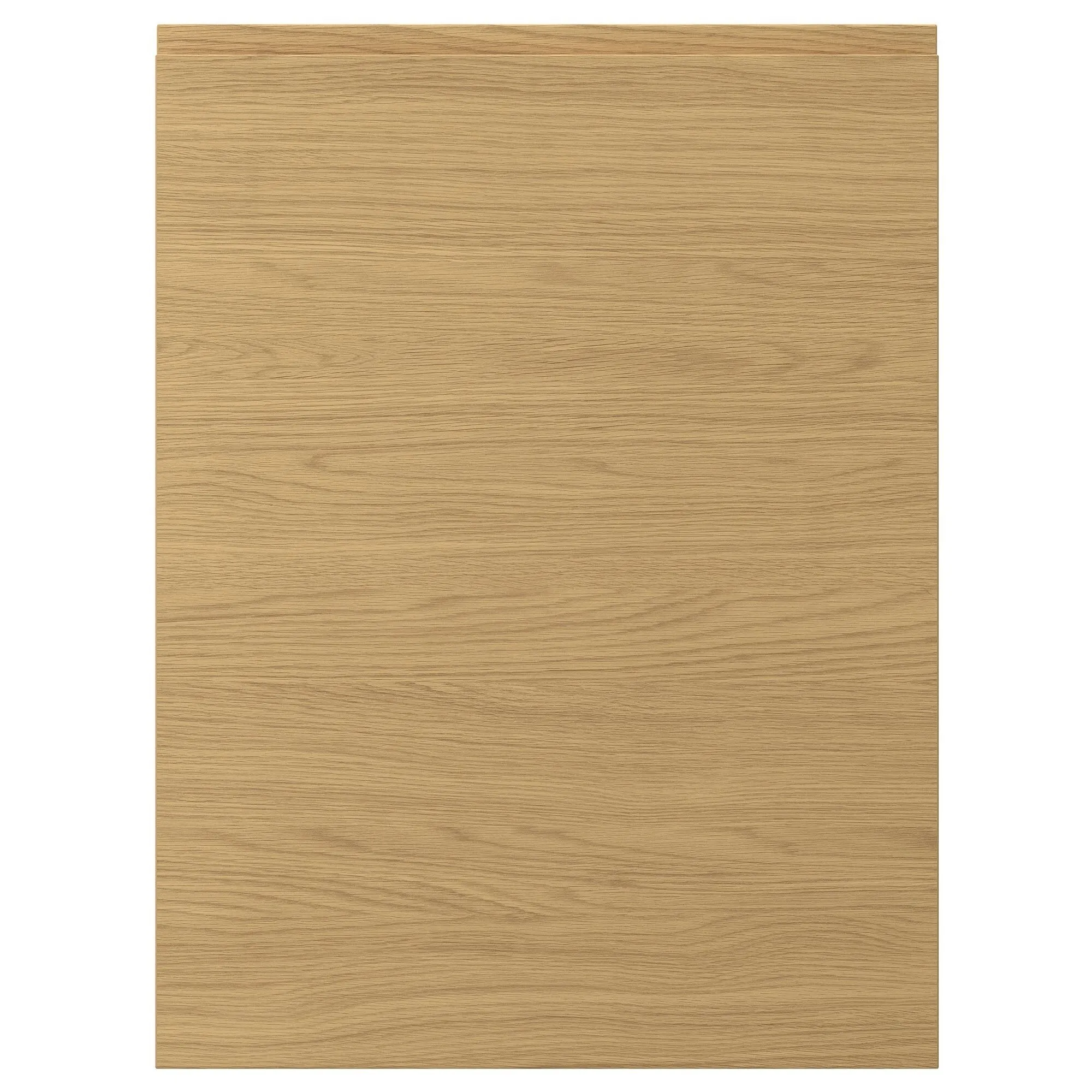 Фронты дверей и ящиков VOXTORP с дубовым выражением и встроенными ручками, которые прекрасно сочетаются с дизайном, создают современный и элегантный внешний вид, наполненный теплом и характером.