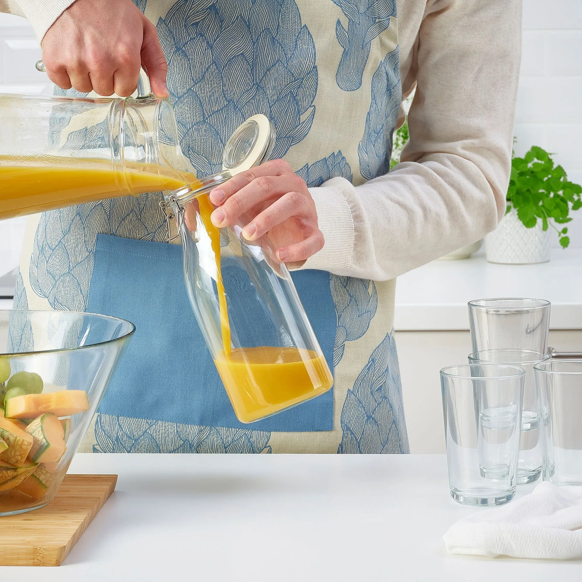 Банка изготовлена из стекла, которое не впитывает запахи и не обесцвечивает томатный соус и т. д., поэтому банку легко мыть.
