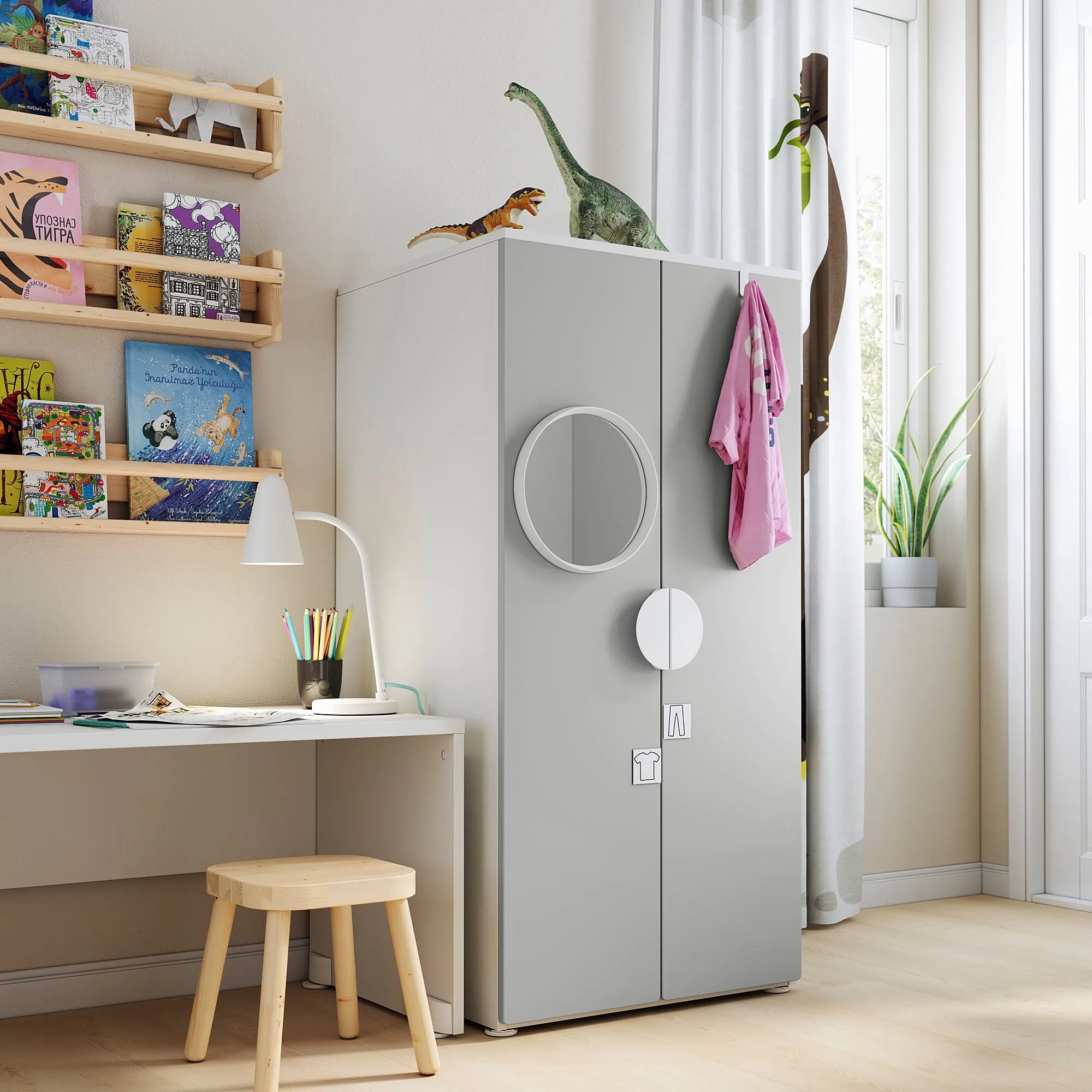 Этот шкаф адаптирован к росту и двигательным навыкам ребенка младшего возраста, так что он может самостоятельно дотянуться и повесить одежду.