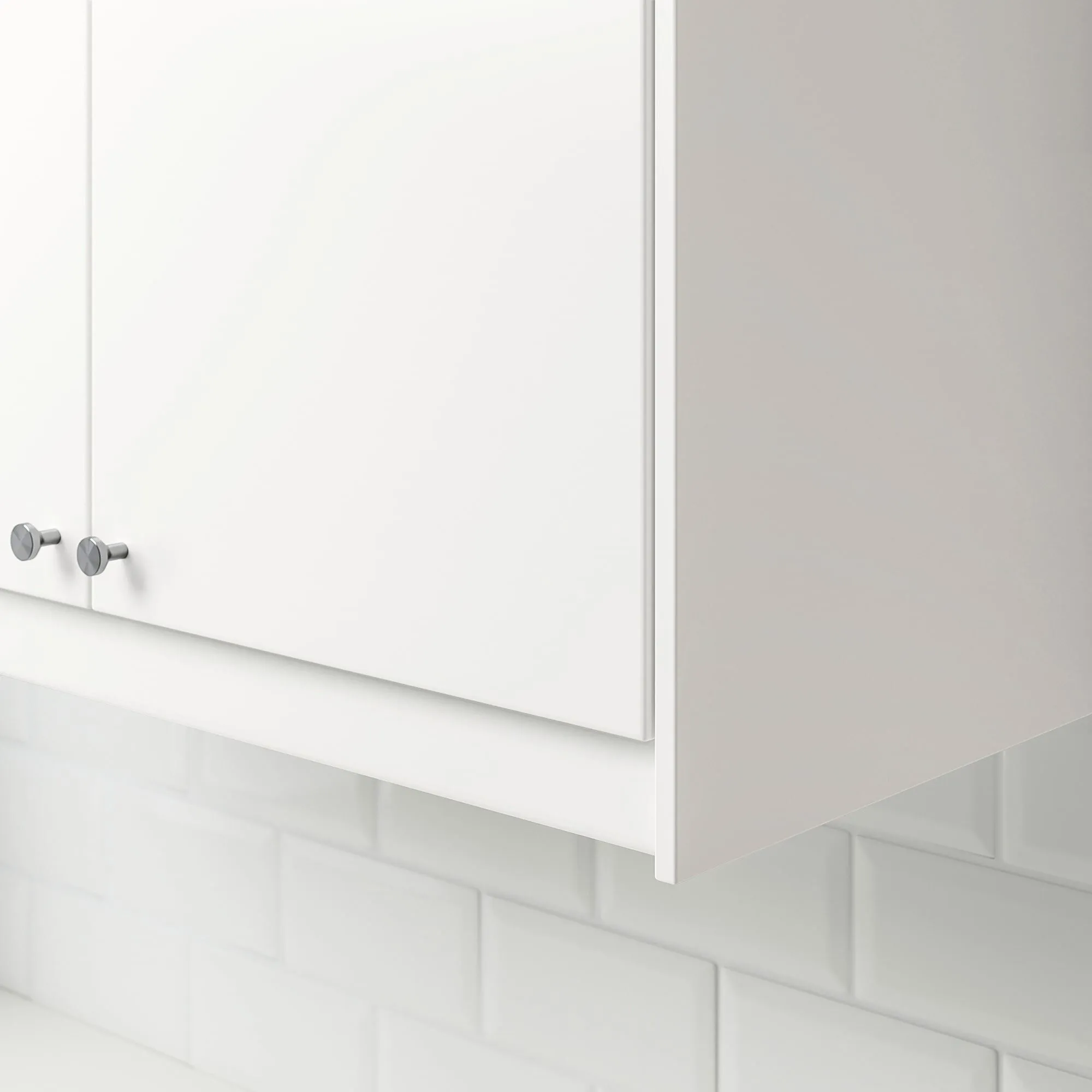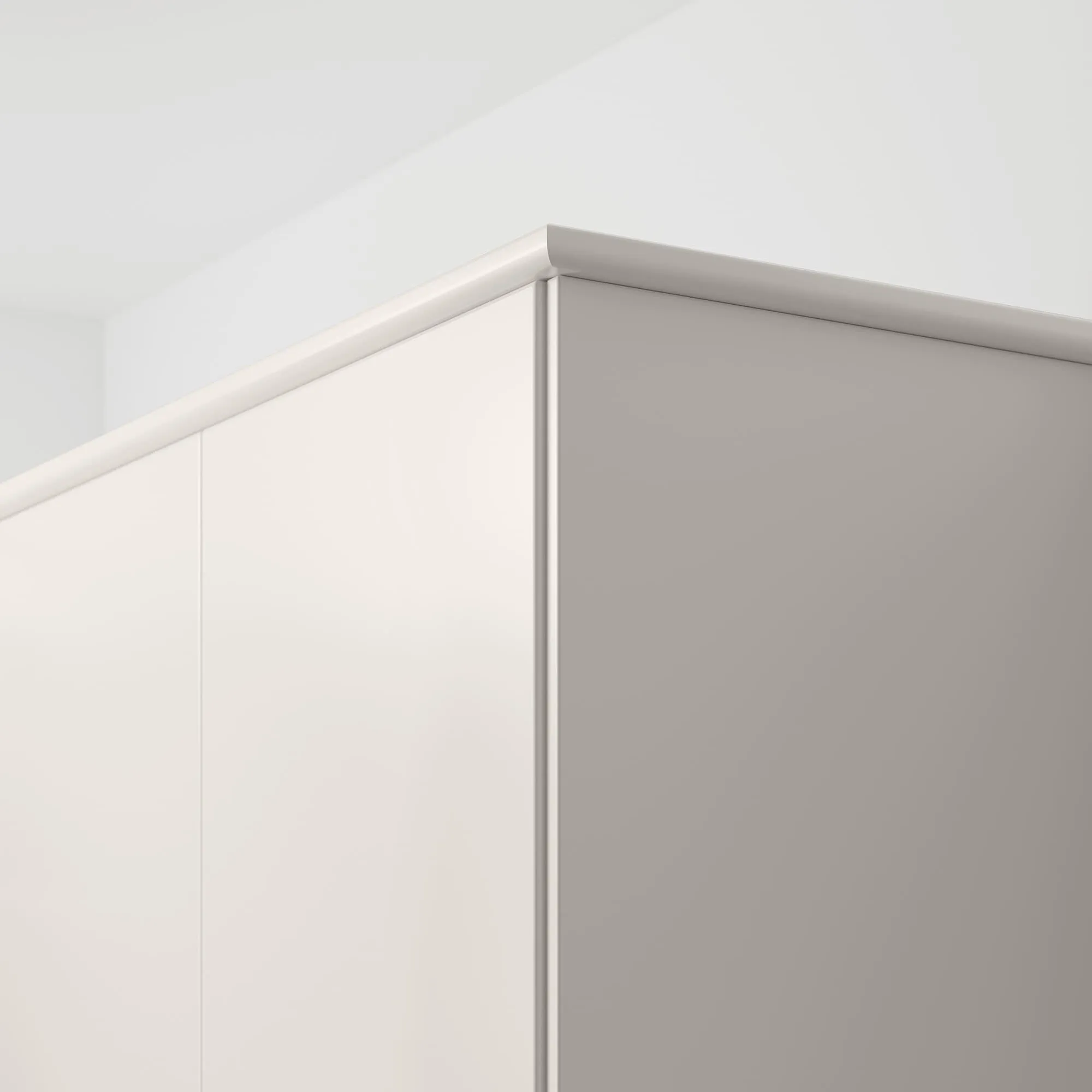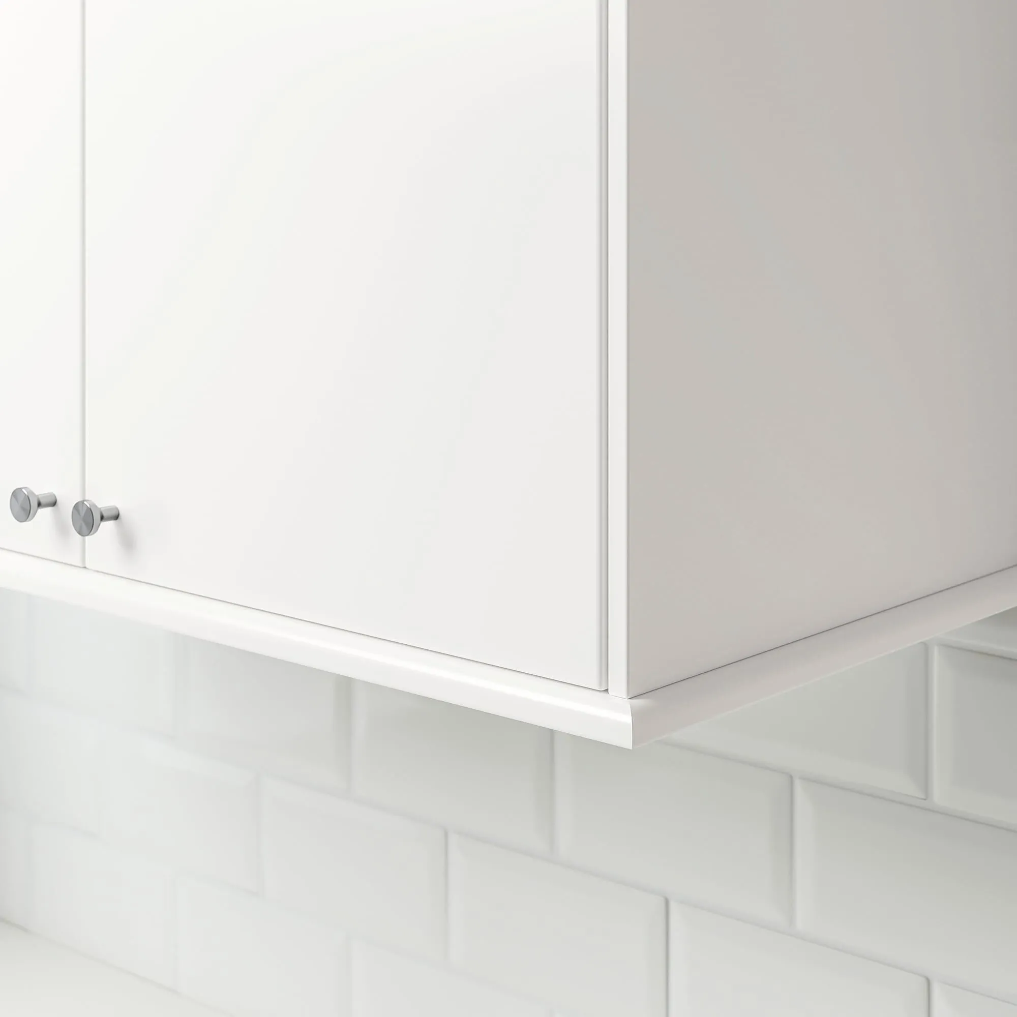 Можно использовать как декоративную планку для скрытия осветительных приборов, шнуров и розеток под навесными шкафами или как молдинг поверх навесных и высоких шкафов.