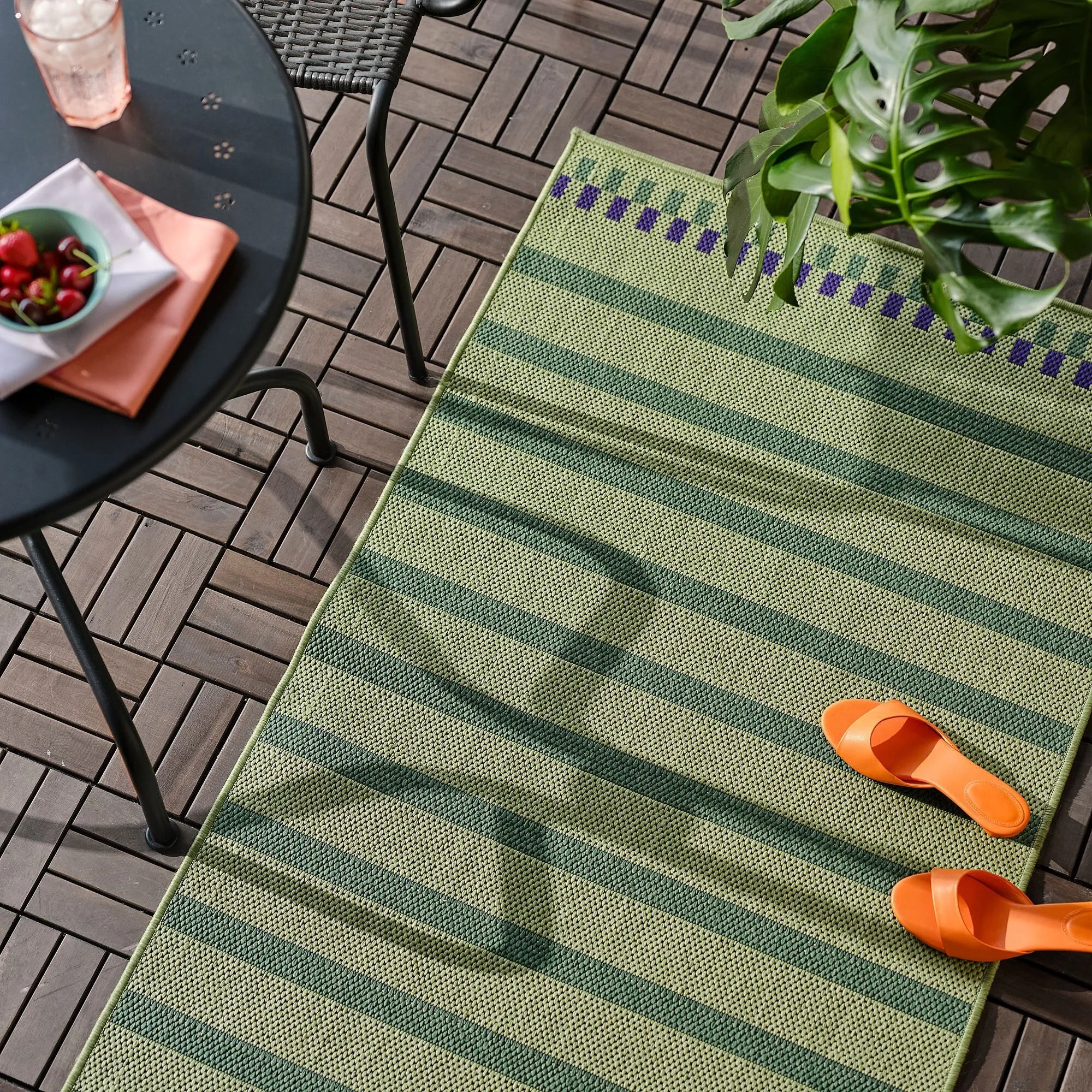 Коврик идеально подходит для использования на открытом воздухе, поскольку он водостойкий и за ним легко ухаживать.