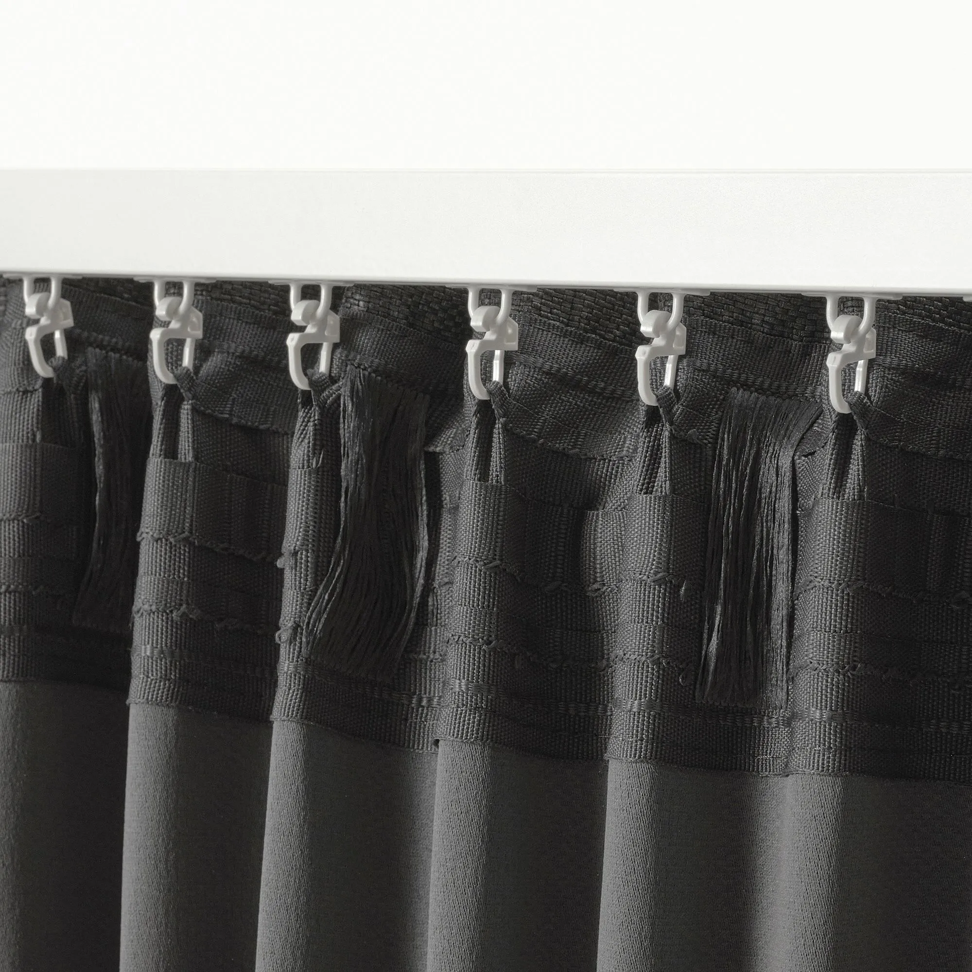 Тканевая конструкция премиум-класса позволяет затемняющим комнатам шторам ANNAKAJSA антрацитового цвета элегантно ниспадать и помогает сохранять комфортный климат в помещении. Длина 300 см идеальна для высоких потолков.