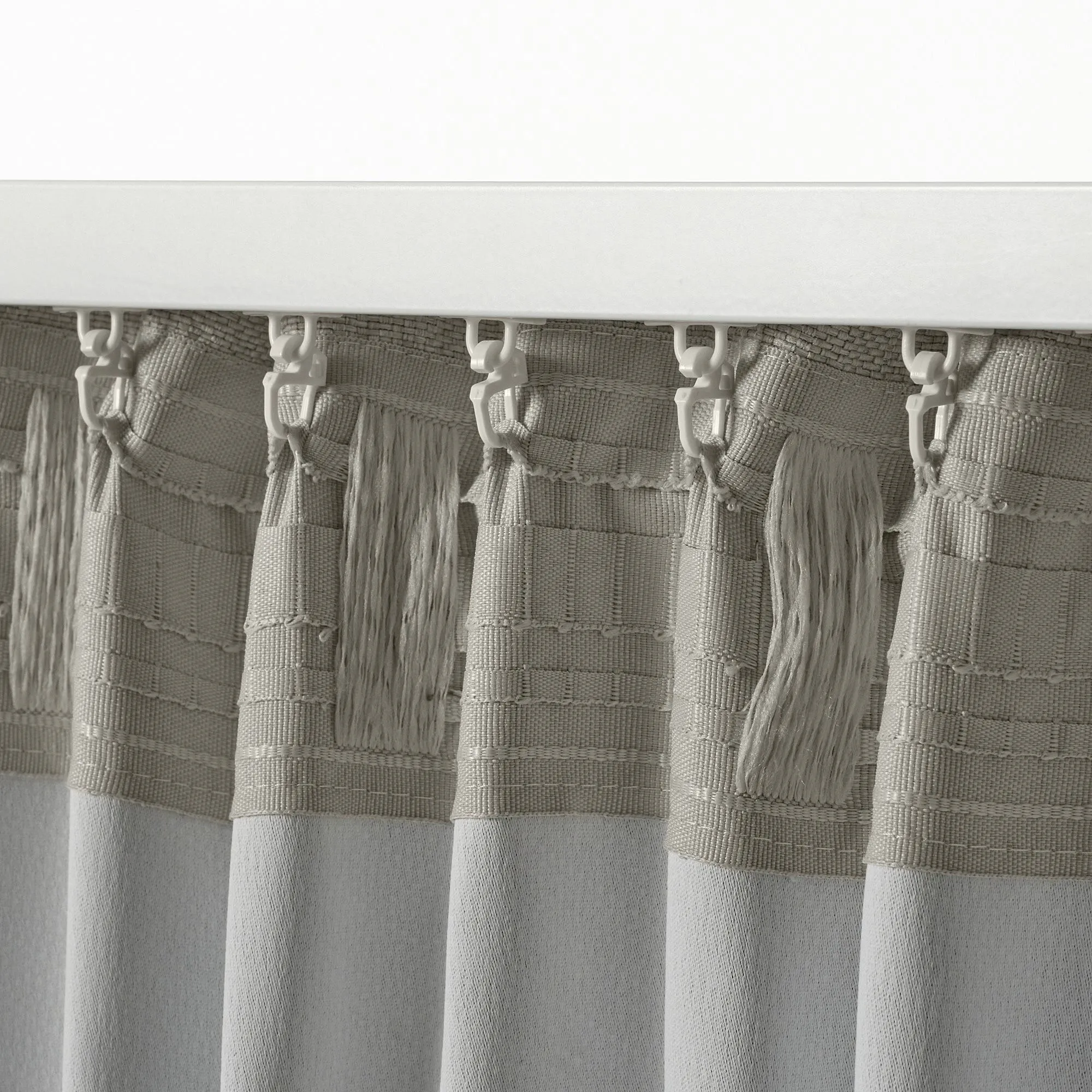 Тесьма по верхнему краю позволяет повесить гардину непосредственно на карниз, используя специальные прорези. Гардину также можно повесить на специальные крючки с бегунками.