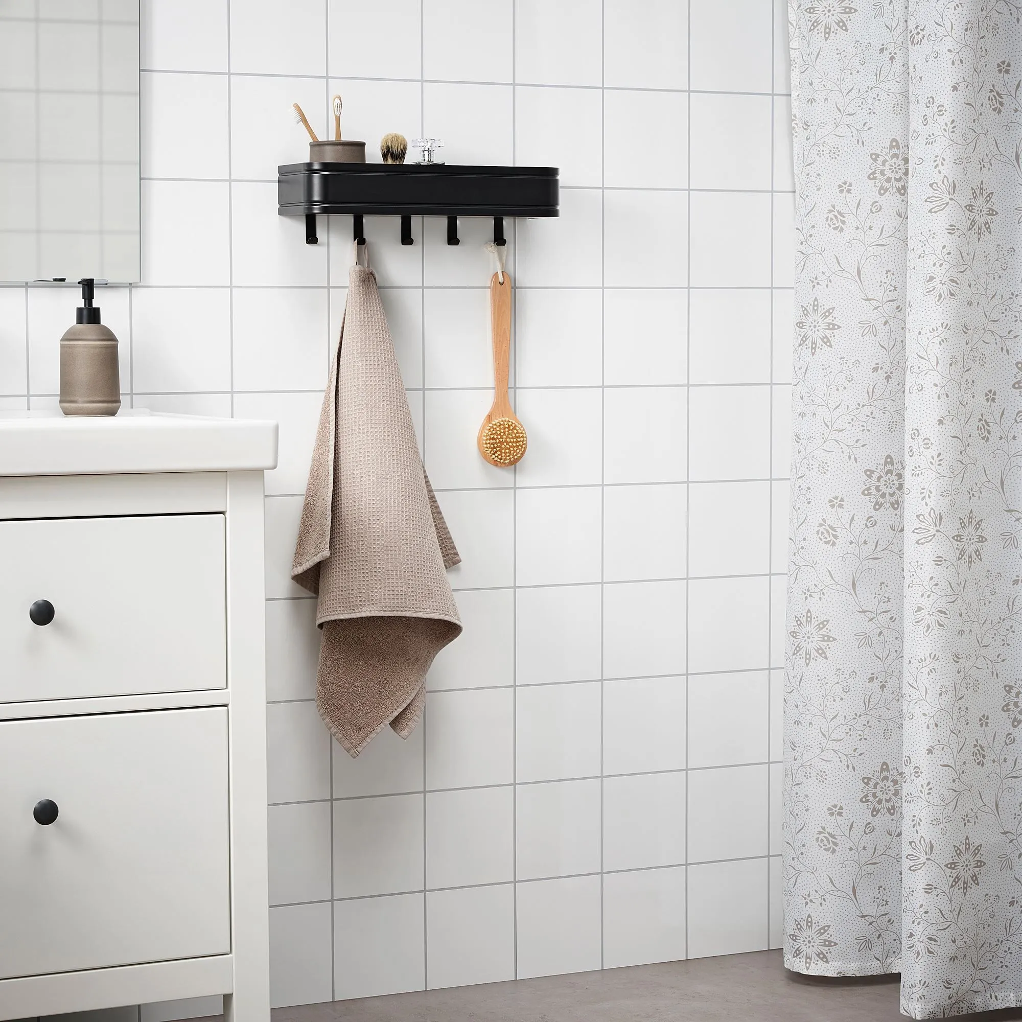 Практическая полка и крючок для хранения в одном.