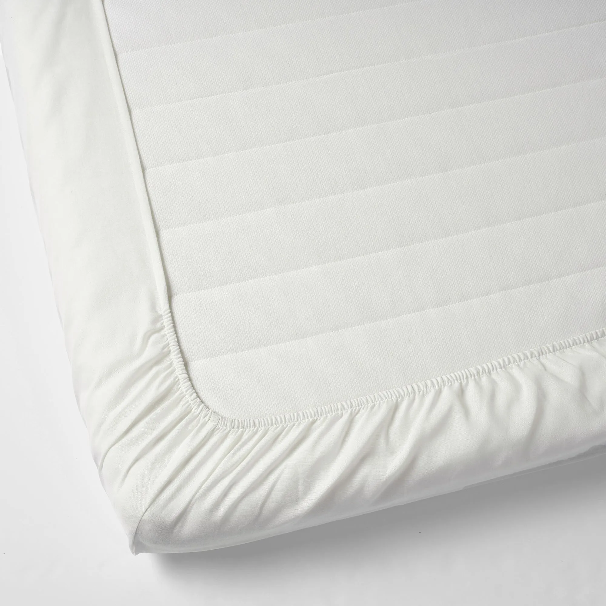 Подходит для матрасов толщиной до 16 см, так как после установки лист имеет эластичную окантовку по всему периметру.