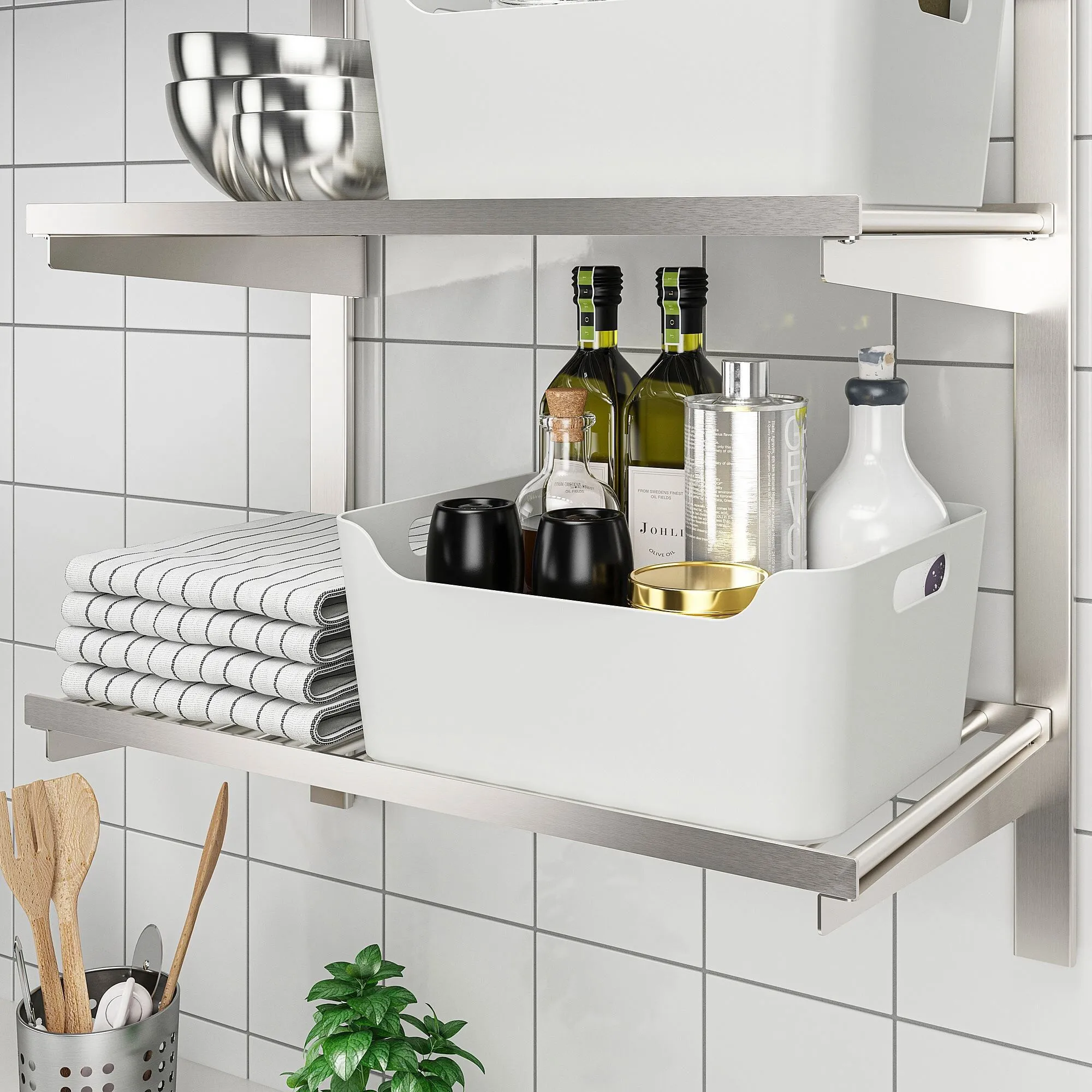 Ящик UPPDATERA легко переносить и доставать из кухонных ящиков или полок, поскольку он имеет две удобные ручки.