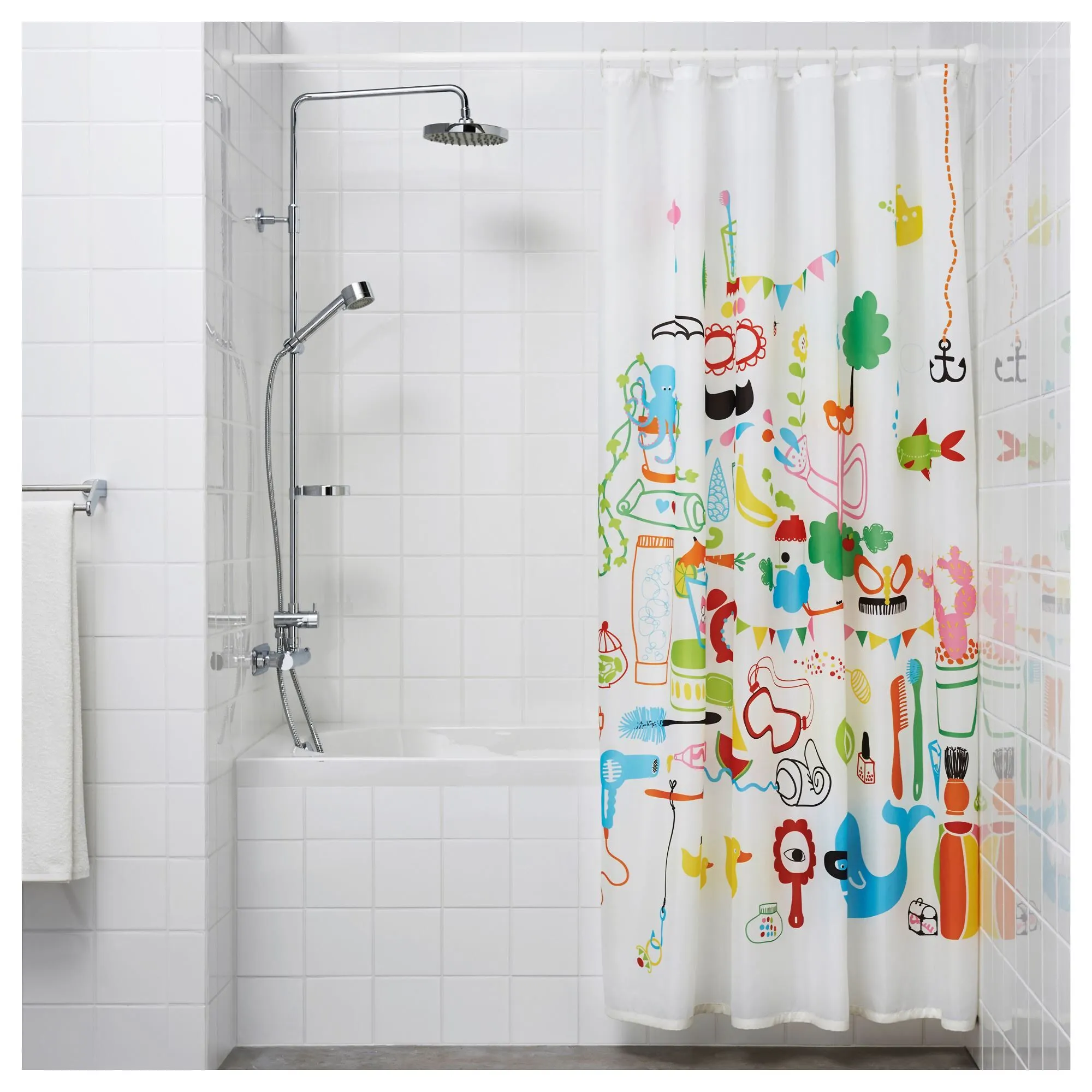 Можно дополнить кольцами для занавески для душа HASSJÖN.