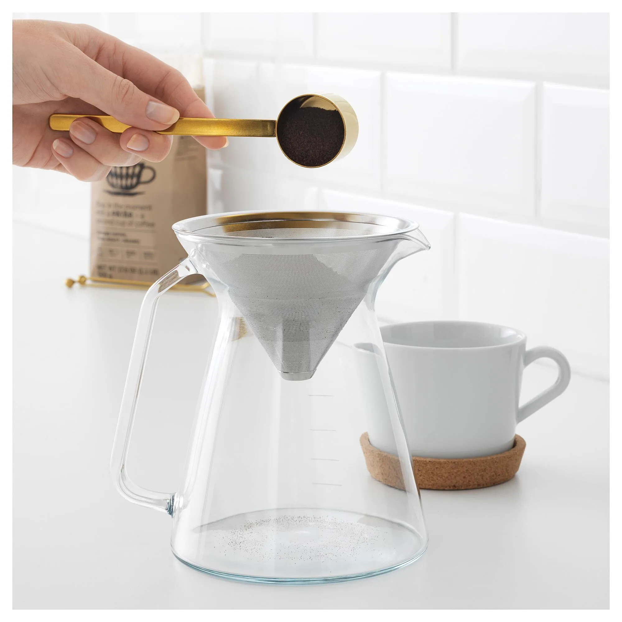 Многоразовый стальной фильтр имеет небольшие отверстия, которые пропускают масла и придают кофе более насыщенный характер.