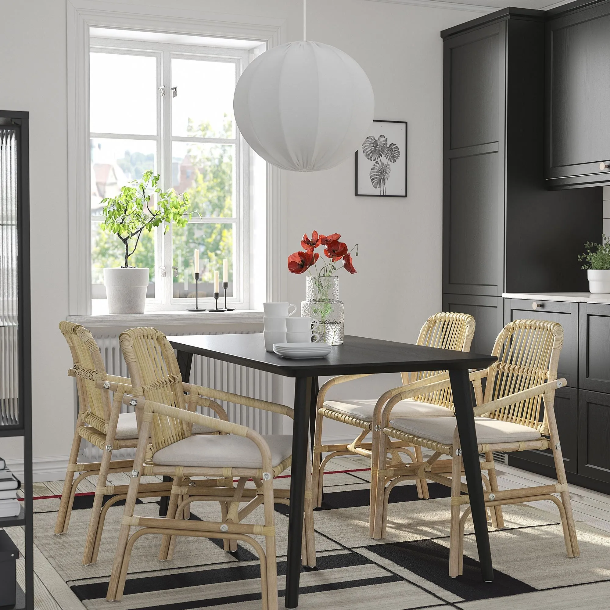 Структура и форма натуральных волокон идеально сочетаются с Стол LISABO, скамейка SALNÖ и подушка GRYTTOM.