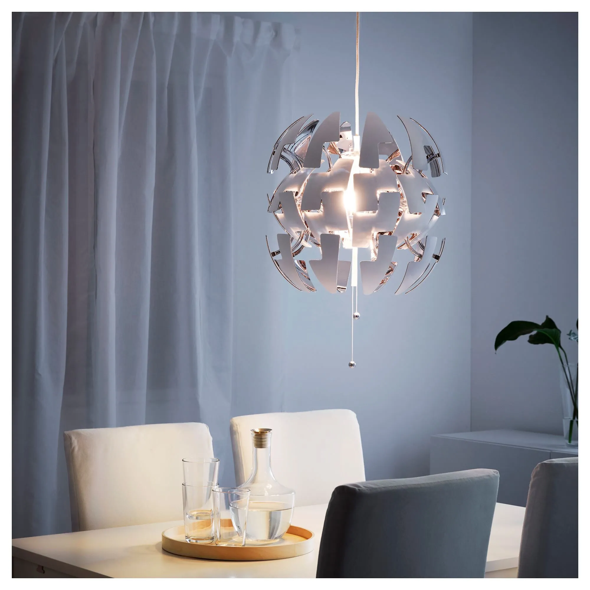 Вы можете легко переключаться между более ярким общим освещением и более мягким декоративным освещением, просто потянув за ниточки.