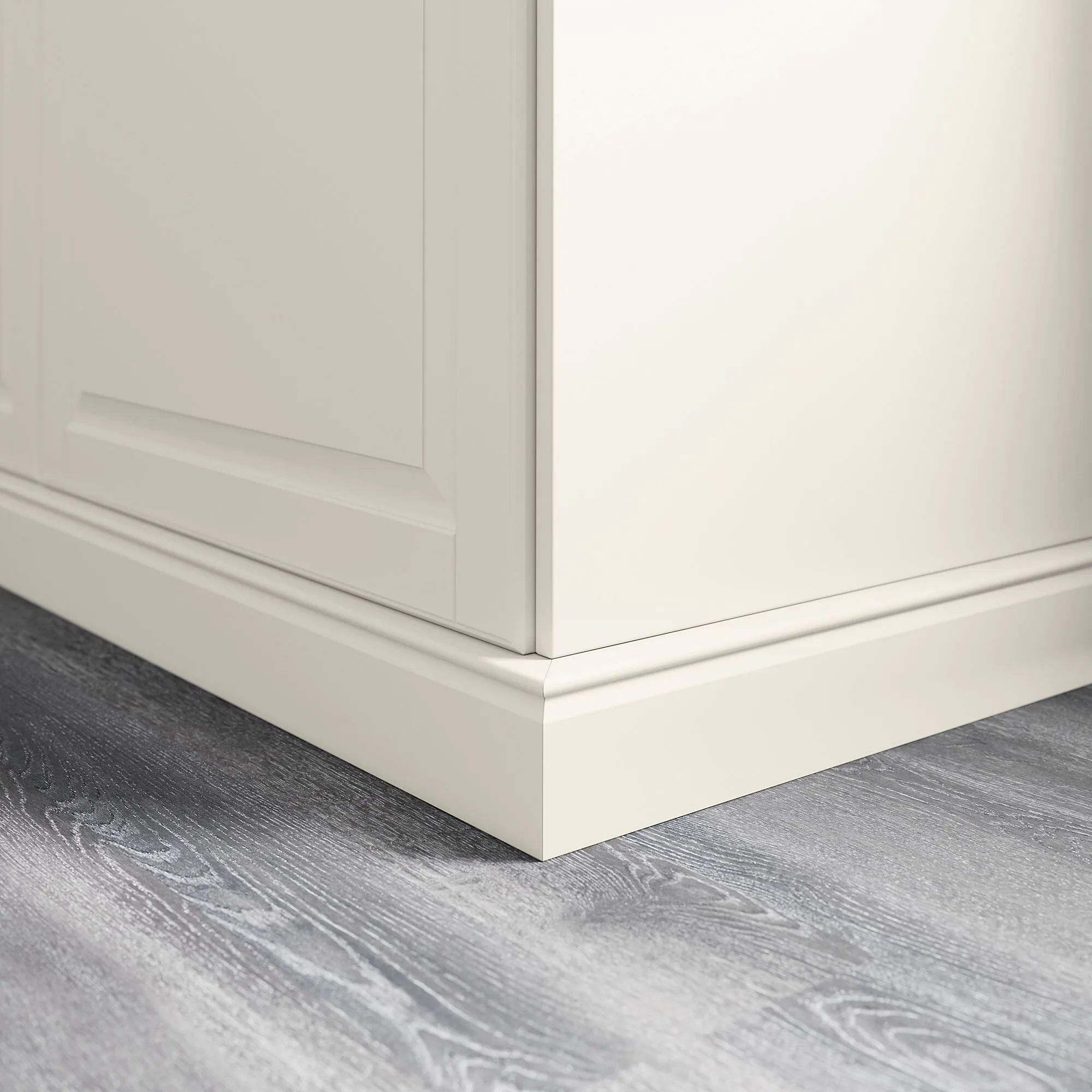 Вы можете завершить внешний вид своей кухни сверху вниз, добавив цоколь, закрывающий зазор между полом и нижними шкафами.