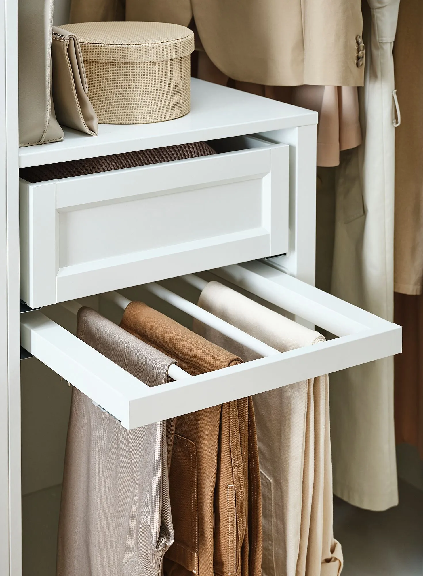 Вы можете легко увидеть и достать свои брюки, поскольку вешалка для брюк выдвигается.