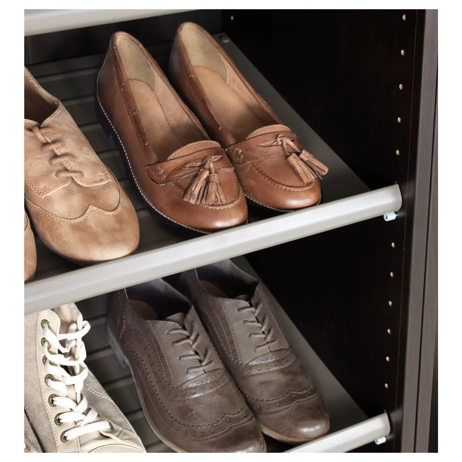 Это Полку для обуви легко снять и почистить, поскольку она опирается на опоры. Никаких инструментов или отвинчивания не требуется!