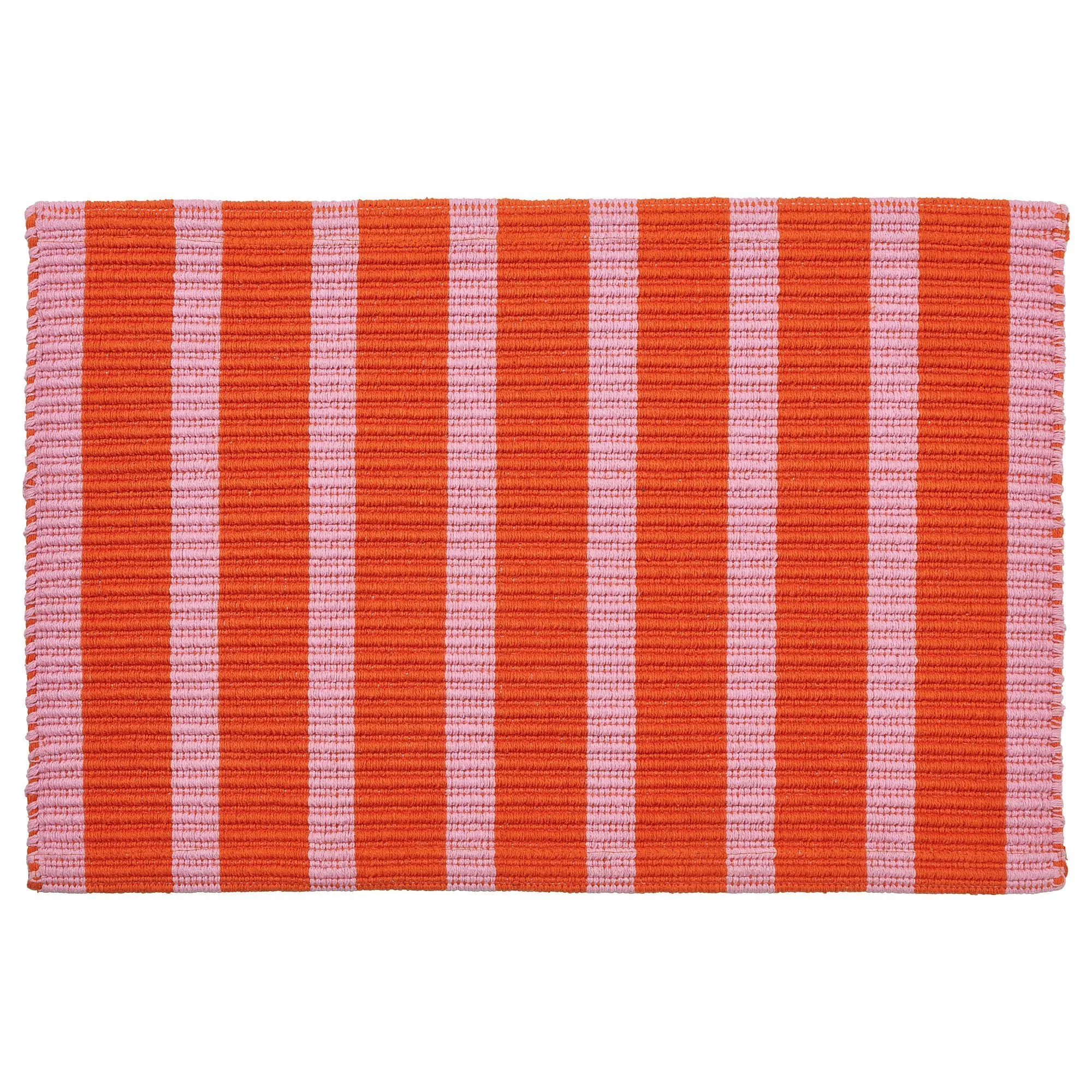 Когда вы входите в дверь, вас приветствует теплое и веселое выражение лица. Игривый вид этого хлопкового коврика для двери с розовыми и оранжевыми полосками не останется незамеченным. Идеально сочетается с ковриком VÄGSKYLT.