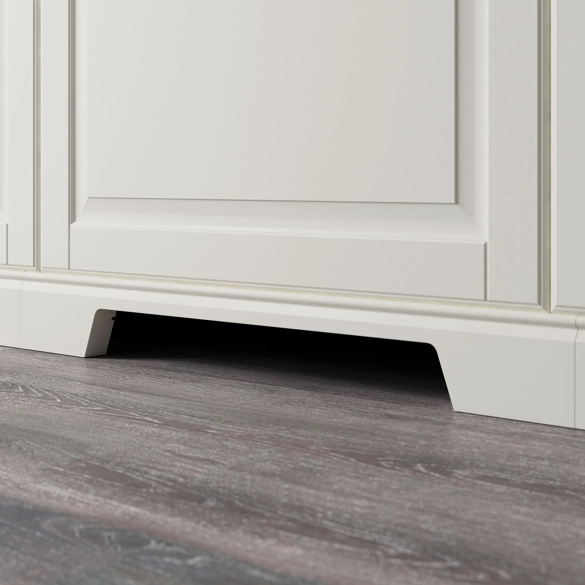 В этом плинтусе имеется вырез для вентиляции холодильника и морозильной камеры, а также его можно использовать под шкафом со встраиваемой техникой или раковиной.
