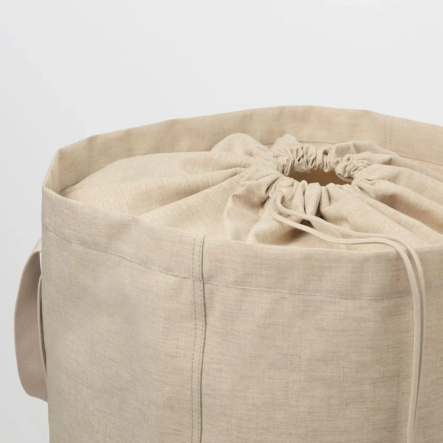 Застежка на шнурке скрывает белье и защищает от пыли. Это также позволяет загрузить немного больше белья в верхнюю часть мешка.