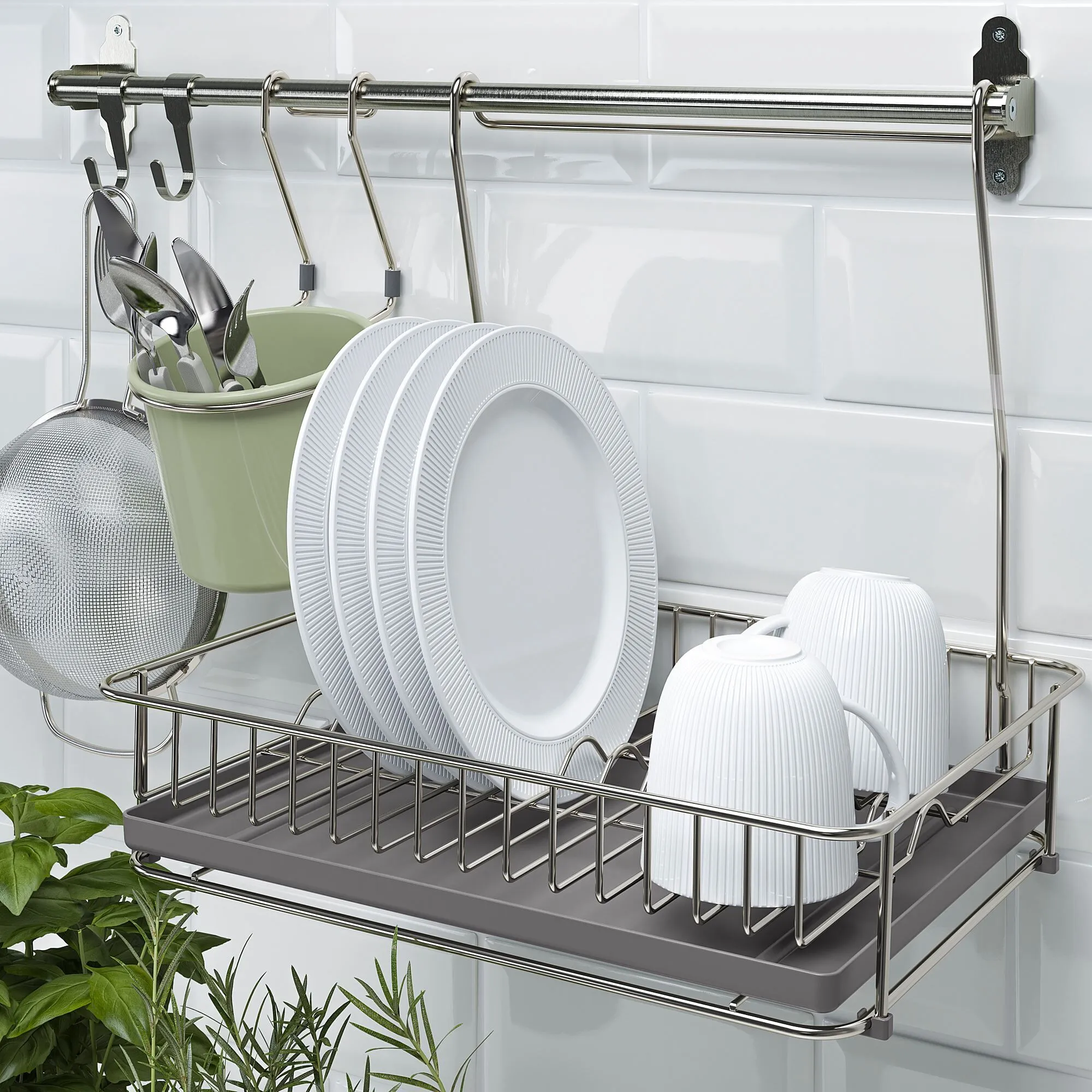 Вы можете освободить место на рабочей поверхности, повесив аксессуары на рейку.