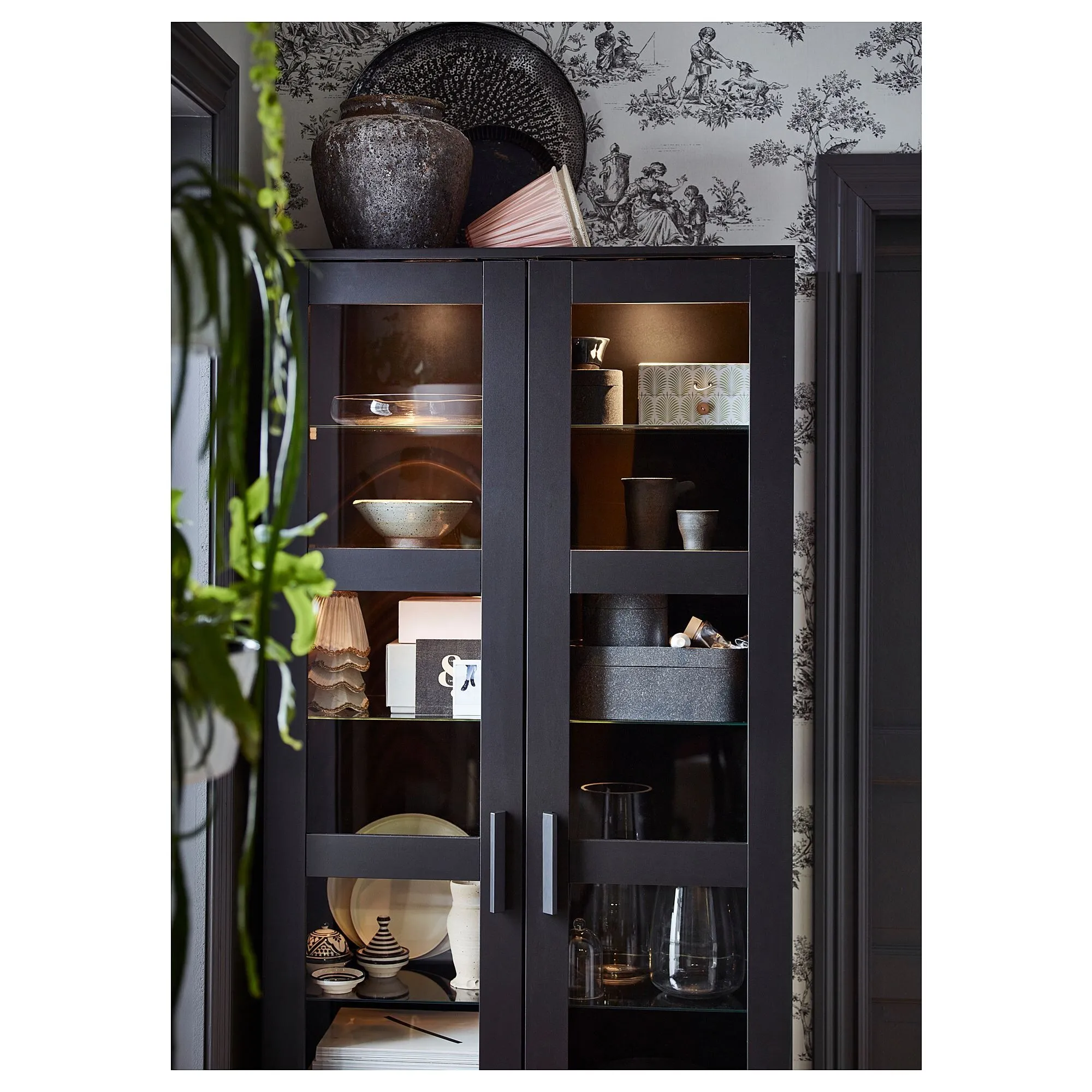 С помощью шкафа со стеклянной дверью вы можете не только защитить свою стеклянную посуду или любимую коллекцию, но и защитить ее. Если вы дополните шкаф подсветкой, вы получите приятный свет, который просвечивает сквозь стеклянные полки и создает уютную атмосферу в комнате. Вы можете персонализировать пространство для хранения вещей, поскольку 10 стеклянных полок можно регулировать. 2 фиксированные деревянные полки образуют стекло. - дверной шкаф более устойчив.