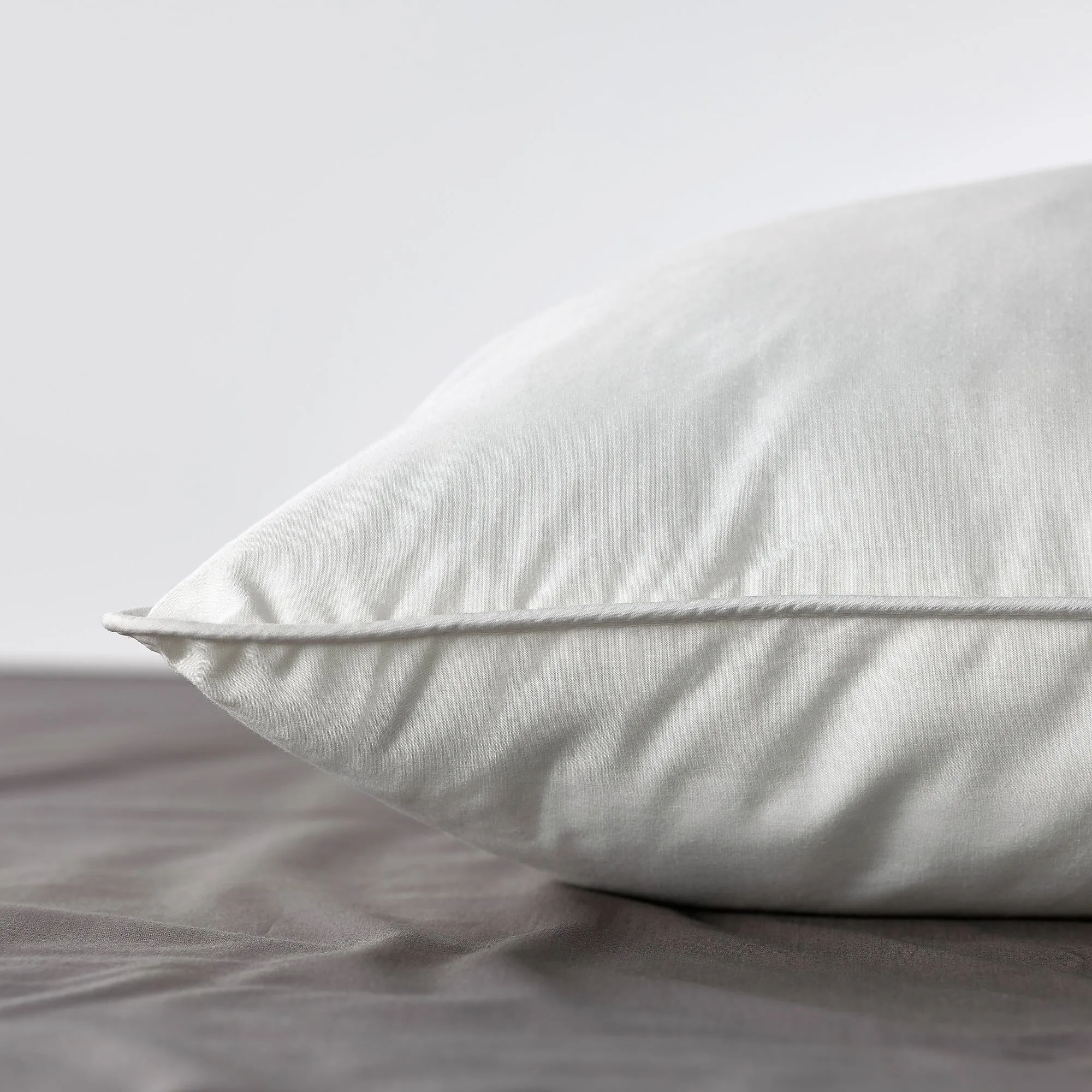 Низкая, простая в уходе подушка из ткани из смеси хлопка и лиоцелла, наполненной полыми волокнами из переработанных источников.