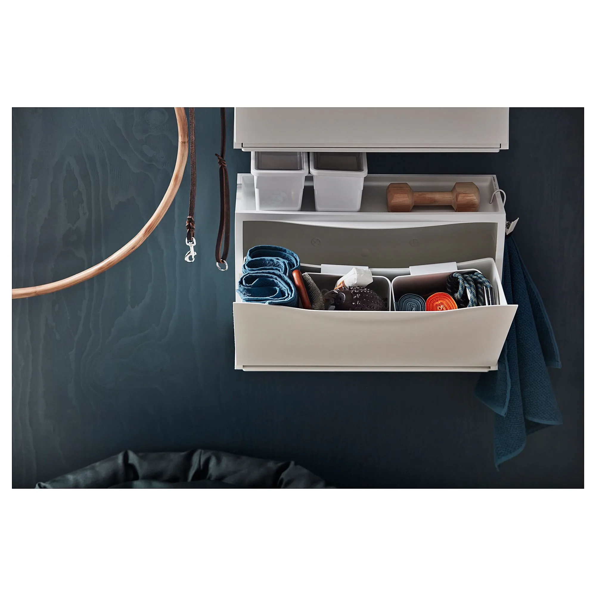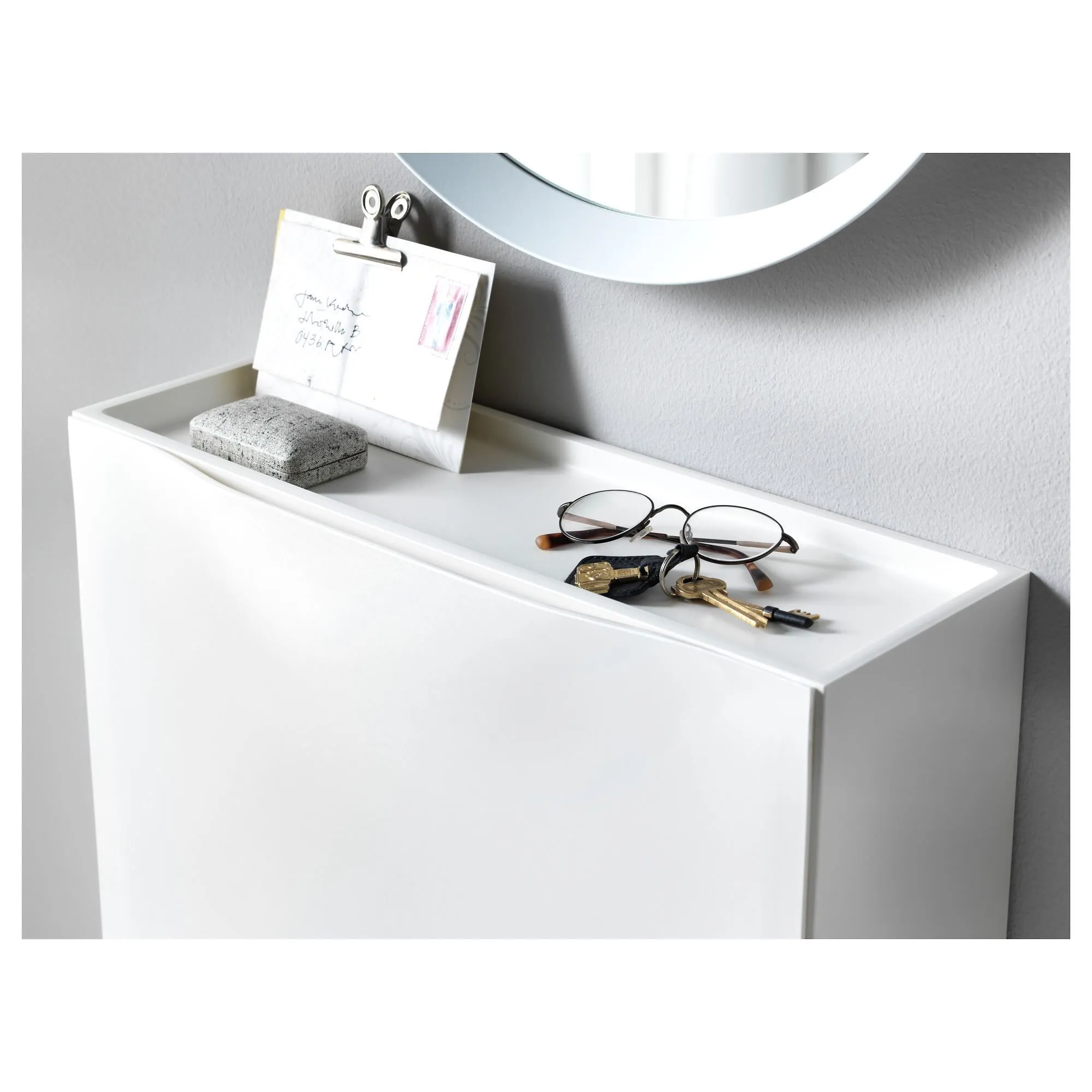 Шкаф занимает мало места, поскольку он неглубокий, и идеально подходит для хранения обуви, перчаток и шарфов.