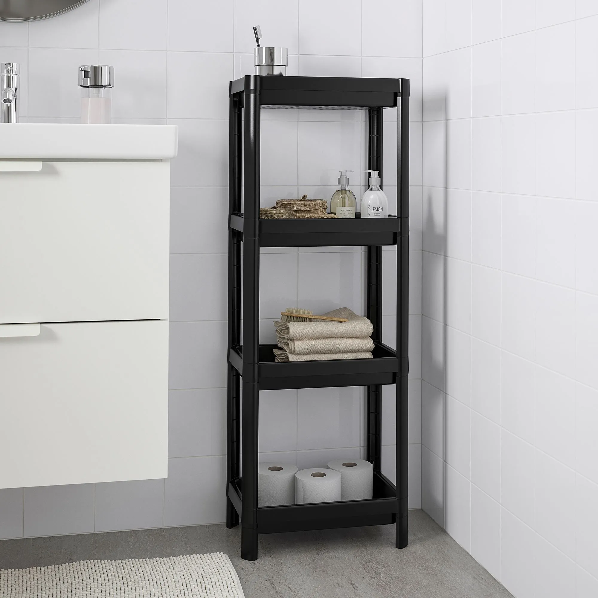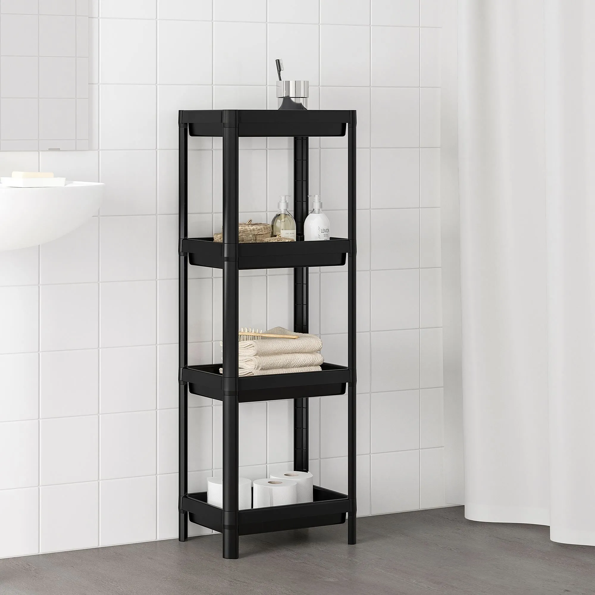 Все остается на месте, от шампуня и кондиционера до губок, как и полка. высокие края со всех сторон.