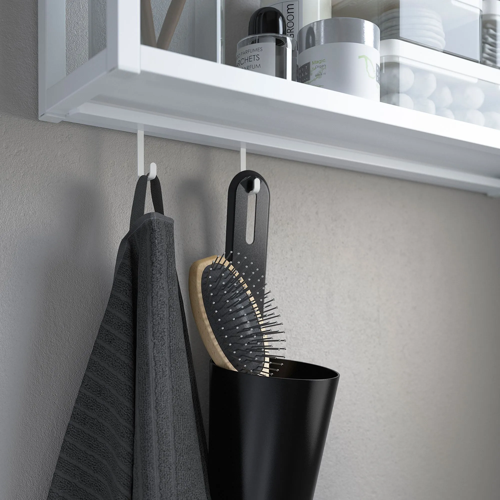 С помощью крючков ENHET и контейнера SKATTON на направляющей вы освободите достаточно места для всего: от столовых приборов до посуда на кухне, аксессуары и зубные щетки в ванной. Продается отдельно.