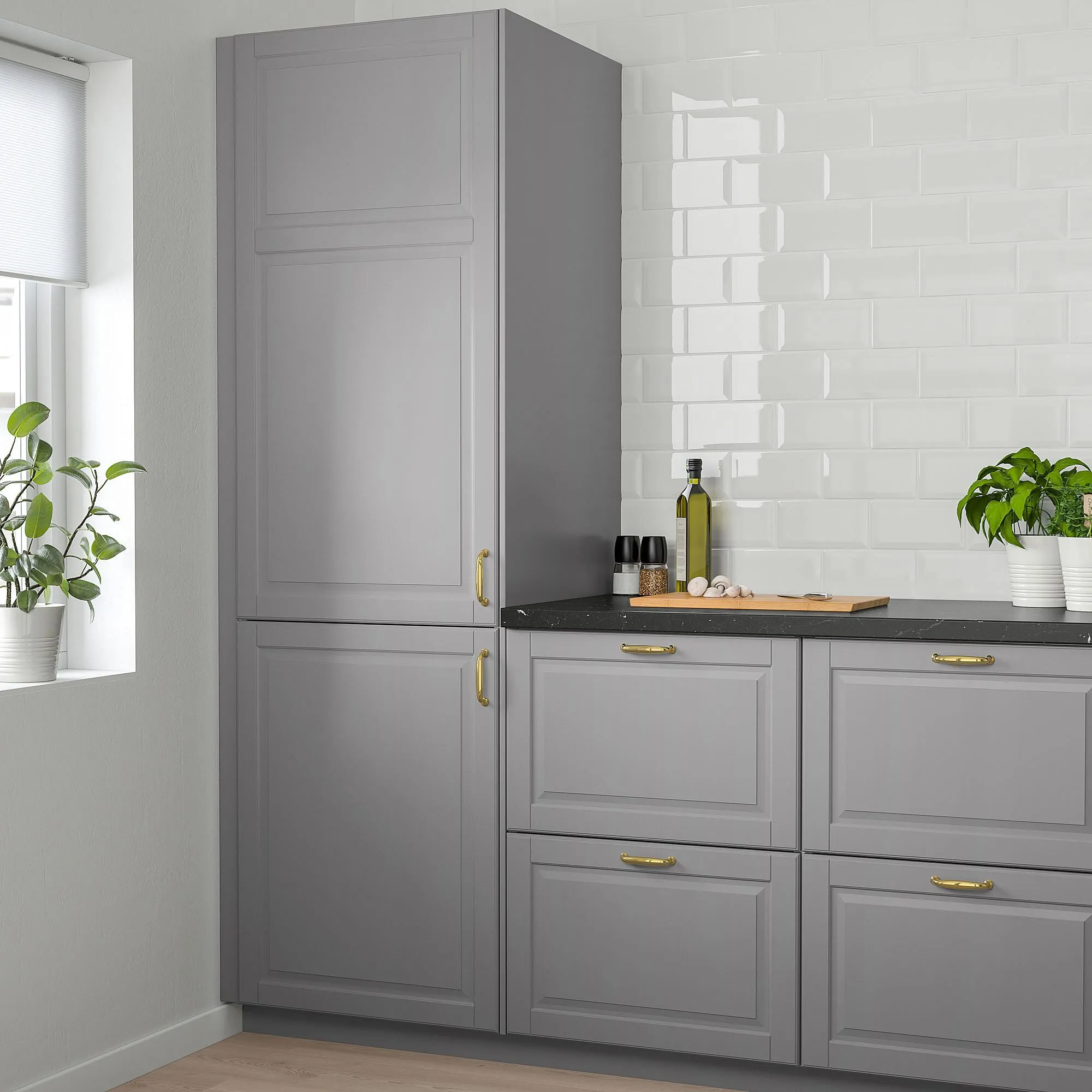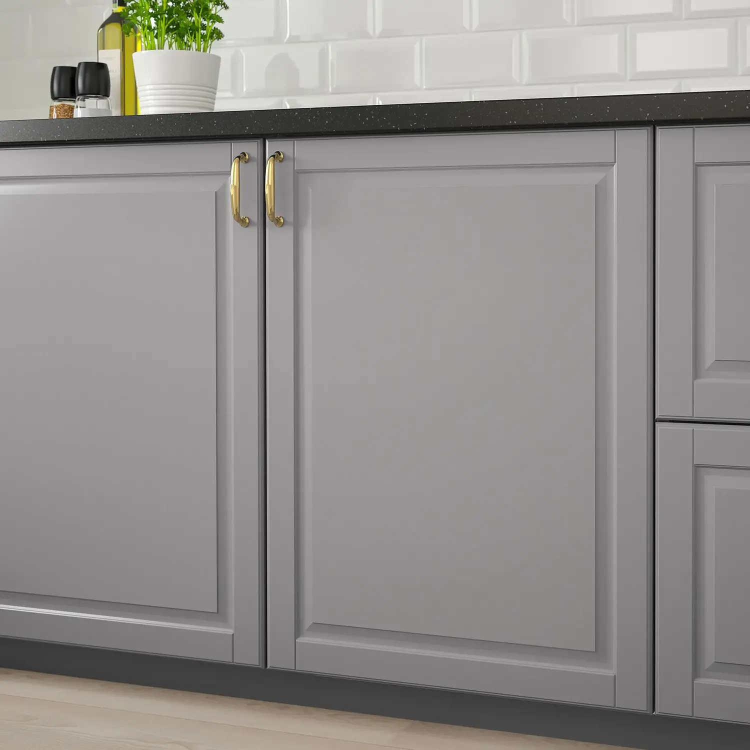 Дверь BODBYN имеет раму и скошенную панель, которые придают ей особый традиционный характер. Мягкий серый цвет придаст вашей кухне изысканный оттенок.