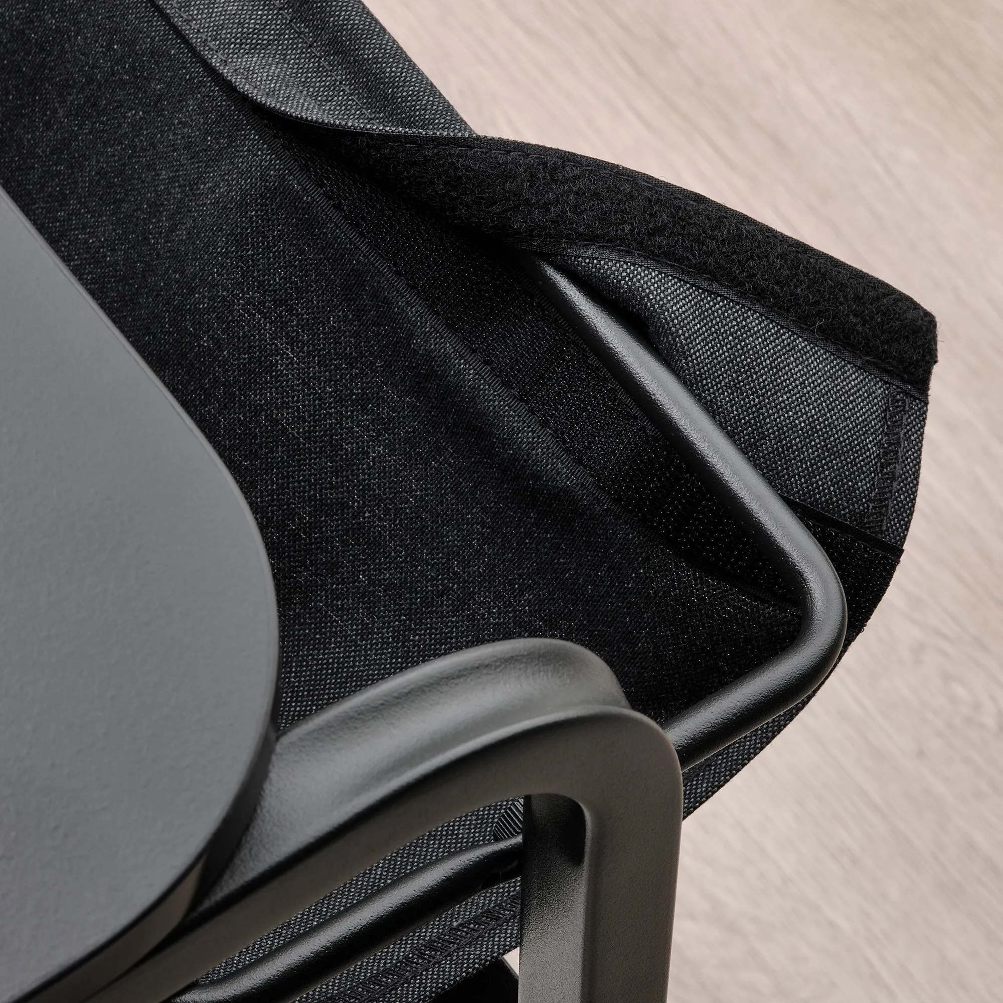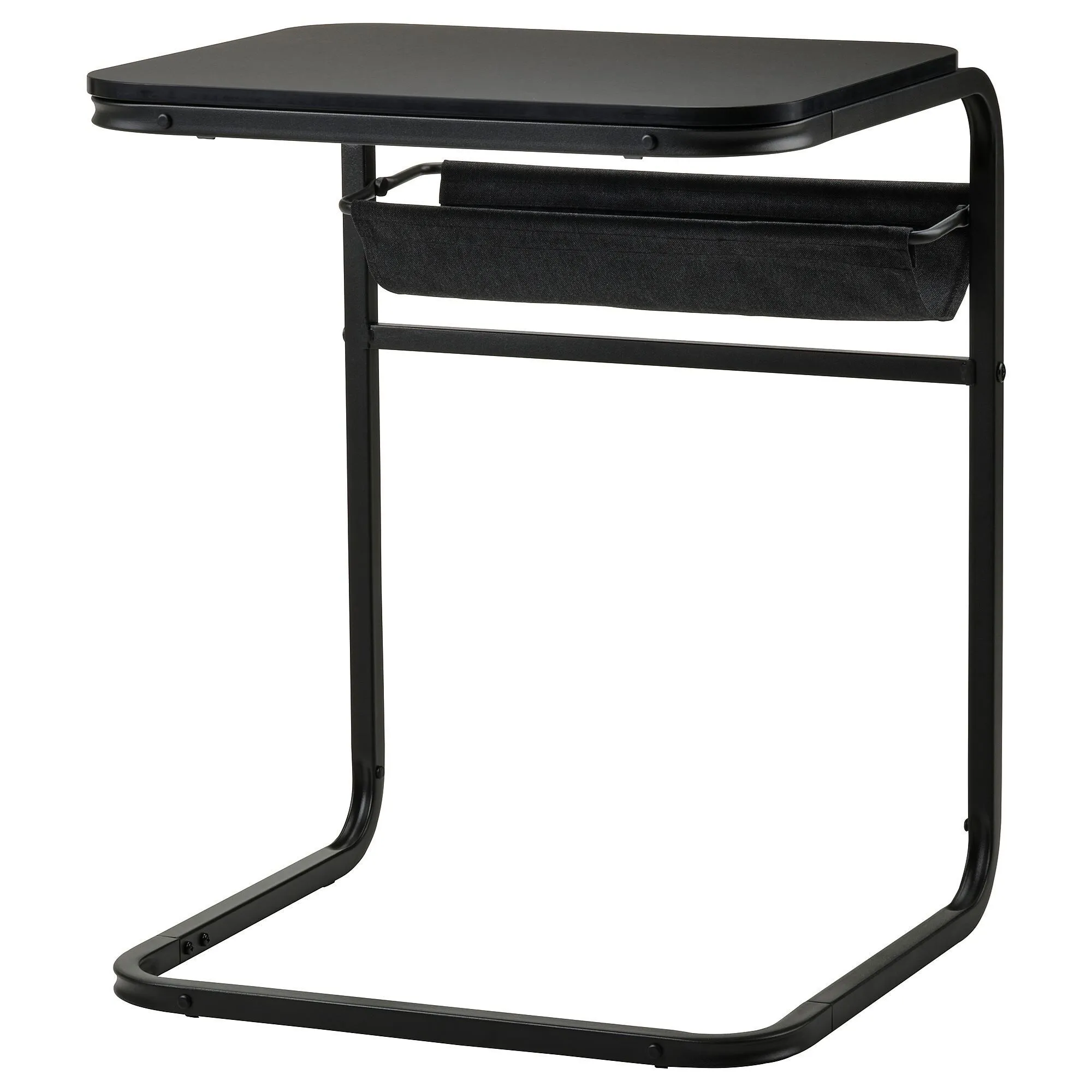 Тканевый мешочек под столешницей — это удобное место для хранения нужных мелочей. близко. Сумка крепится к подрамнику с помощью застежки-застежки, поэтому ее легко снимать и стирать.