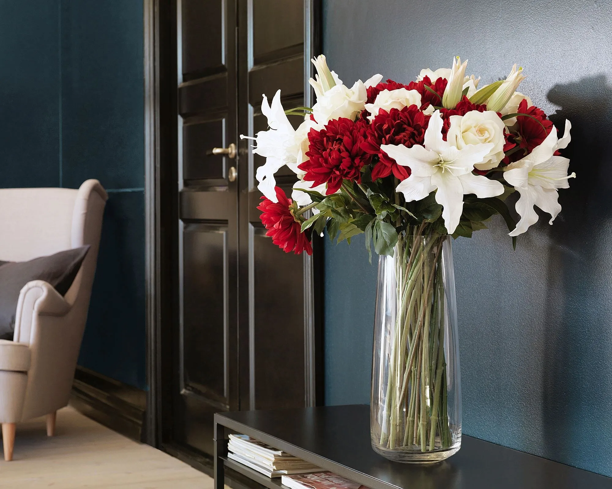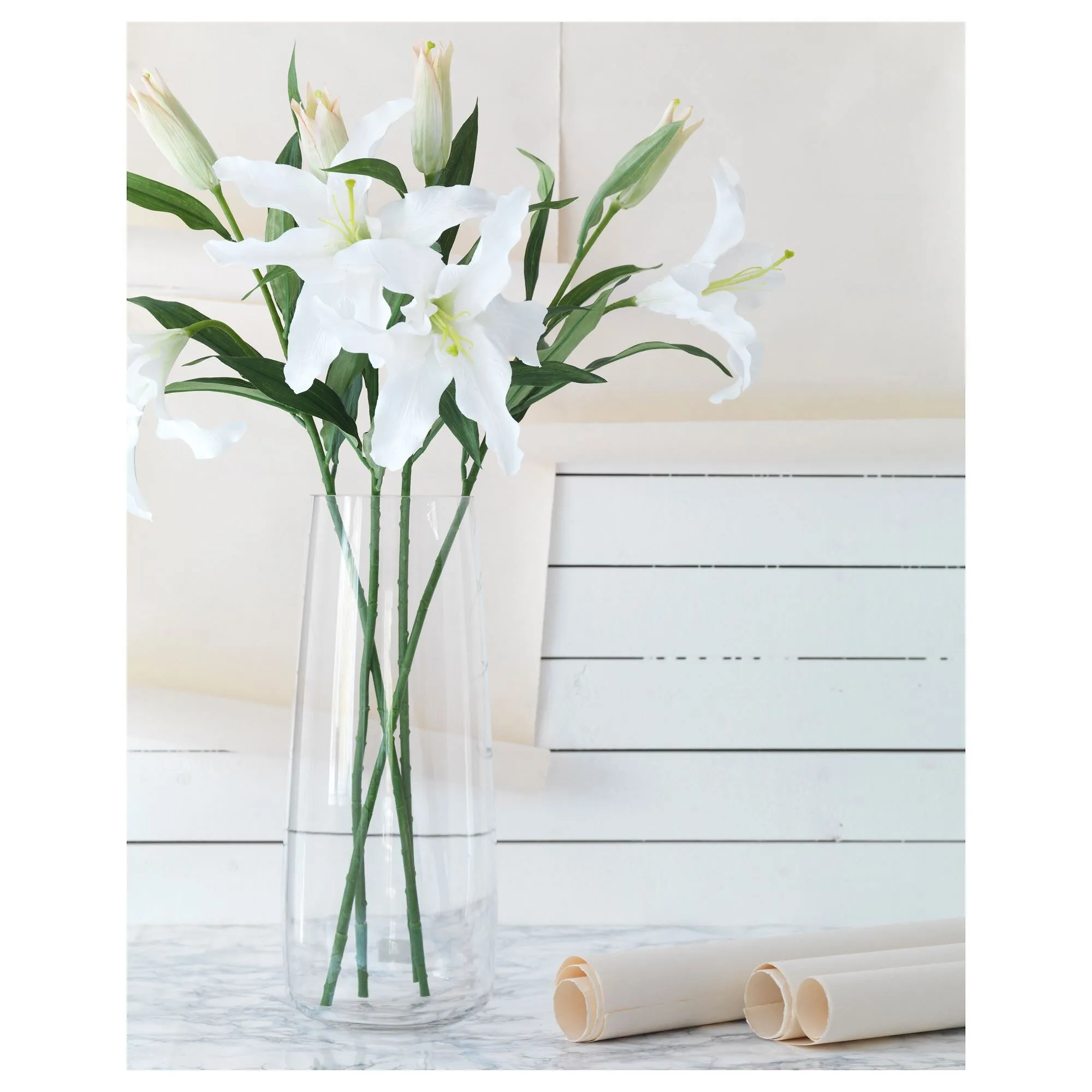 Ваза идеально подходит для лилий и других цветов с длинными стеблями.
