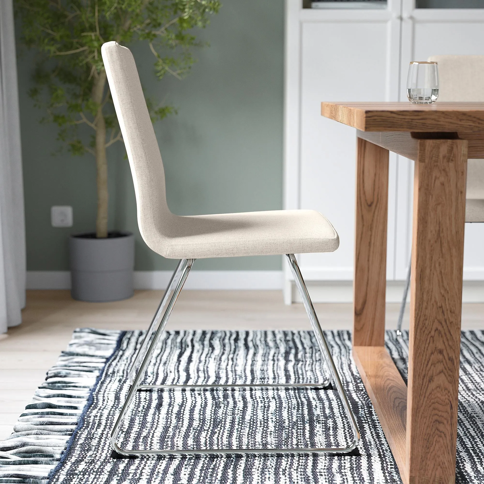 Стул прочно стоит на месте благодаря металлическому основанию.
