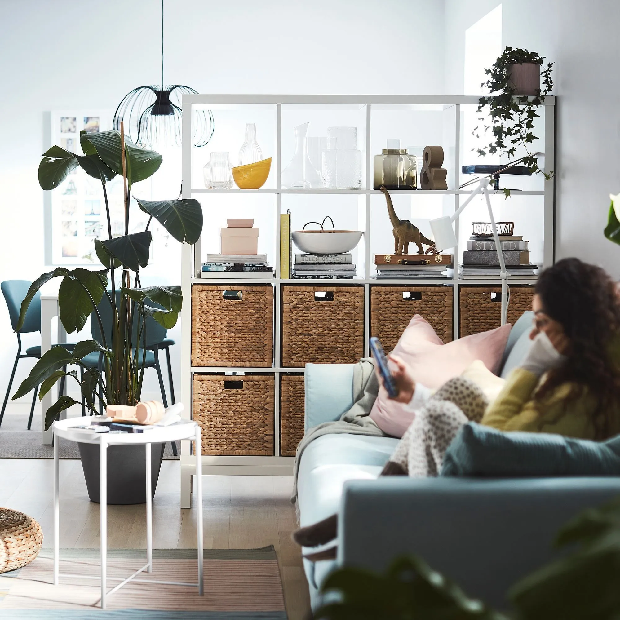 Вы можете использовать этот стеллаж в качестве перегородки, чтобы создать комнату внутри комнаты, сохранив при этом много места для хранения вещей.